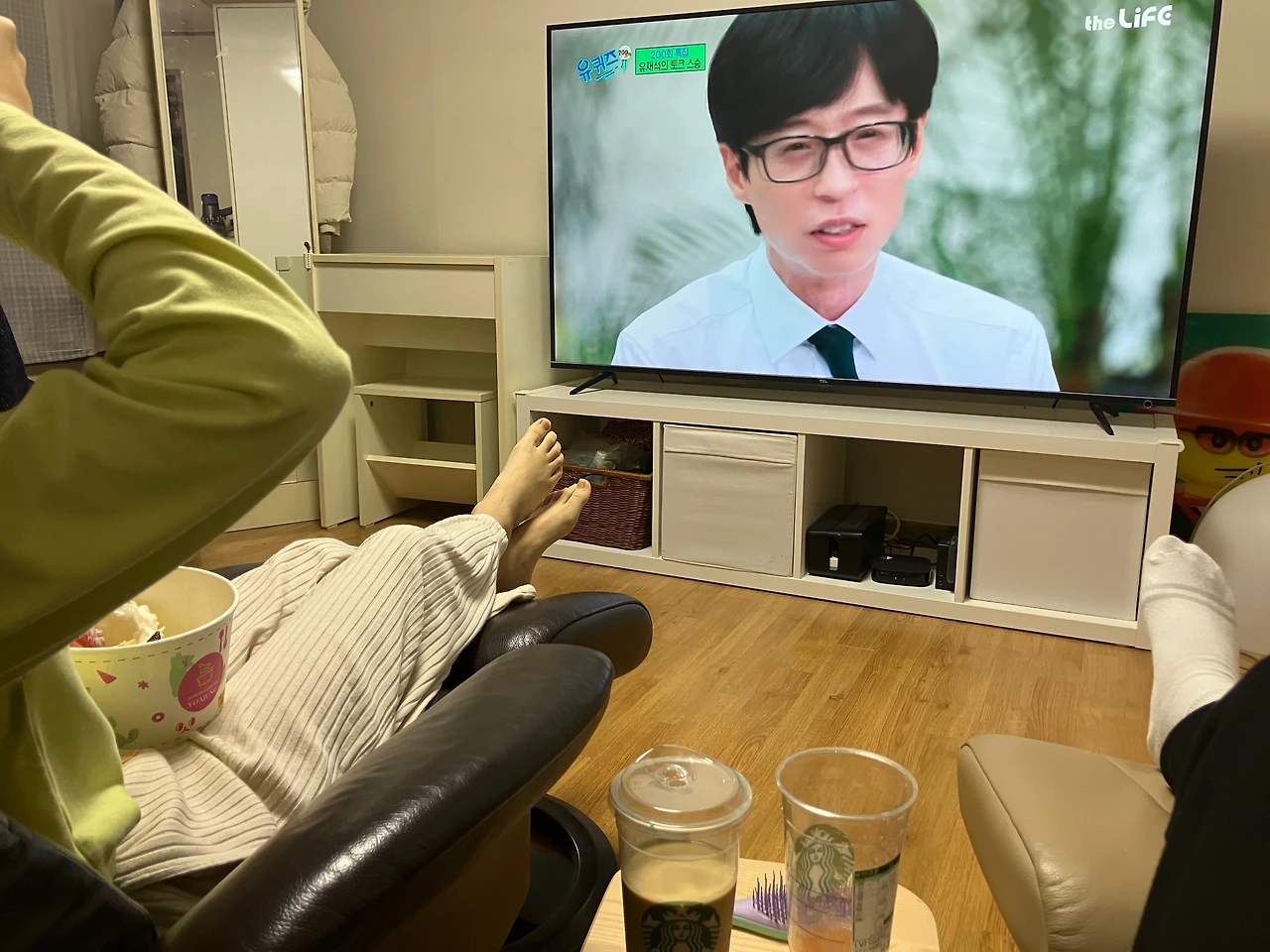 딸은 요아정을 나는 스벅 음료 두 잔을 호사스럽게 옆에 놓고 유퀴즈 재방송을 보는 걸로 오늘 하루를 마무리~
