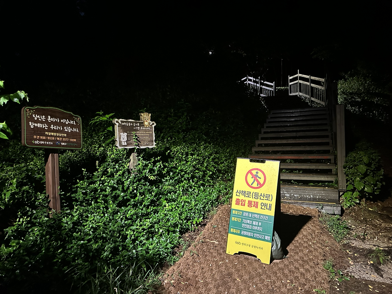 마침 늘 가던 산책길로 가보니 위험 팻말도 놓여 있었다. 오예? 오늘은 계단 NO!