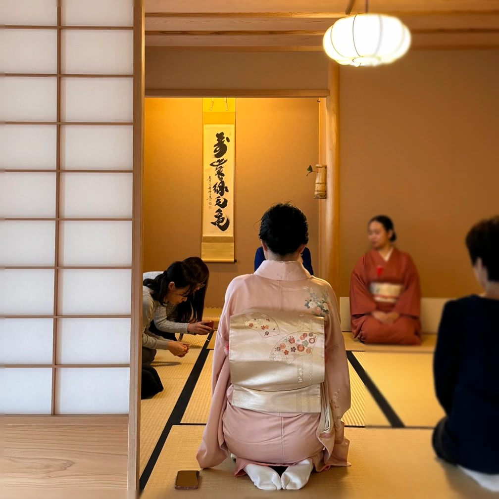 차를 내어준 주인과 남편이 두 손을 무릎 앞 다다미에 살포시 올려 고개를 숙이며 인사를 한 뒤 첫 잔을 대접받고, 남편은 그 옆 두 번째 손님인 나에게 '실례지만 먼저 마시겠습니다'라고 또 한 번 가벼이 인사를 한 뒤에야 잔을 든다. 그렇게 모인 사람은 마실 때마다 옆 사람에게 양해를 구해야 한다. 편안한 대화가 오가는 티타임과는 확연히 다른 그야말로 다도 (차도) 시간임이 느껴지는 순간이다. 영어로도 Tea ceremony라는 말보다 The way of Tea를 선호한단다.