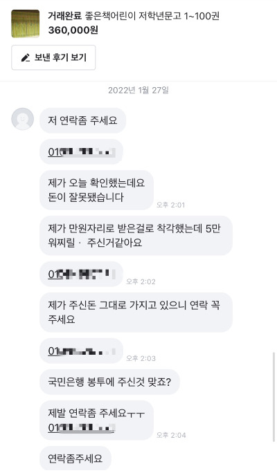 반면 같은 번호를 계속 계속 보내시던 판매자.