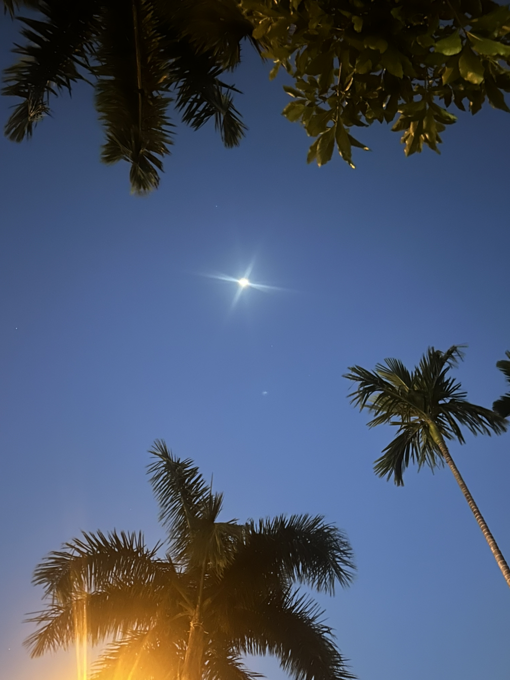 마음먹은 반환점을 돌아오며 하늘을 보니 어느새 해는 완전히 넘어가 별들이 보인다. 띄엄띄엄 별 몇 개랑 그리고 짙은 남색 하늘에 그림자처럼 삐죽 대는 까만 야자나무. 그리고 사이로 초승달이 반짝이는 게 ’와 그림 같아!‘ 사진을 남겨보지만 실물만 못하지. 후다닥 대충 사진을 남기고 다시 러닝 시작.