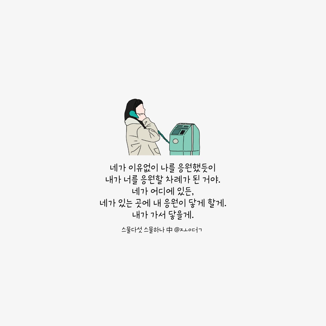 '처음'이기에 알 수 없었던 것들, 시간이 지나면서 그 의미를 깨닫게 되어 그리울 것이고, 그 의미를 깨닫는 순간 그 '처음'의 것들은 다시는 느낄 수 없다. 그래서 더 마음 아프고 아름다운 나의 스물다섯과 스물하나를 간직하면서, 계속해서 어른이 되는 내가 그 마음을 잊지 않고 살아가길 바란다. 그리고 가끔은, 이런저런 걱정을 늘어놓기보다 사랑하는 사람들에게 정말 대가 없이 응원을 보낼 수 있는 어른이 되길.