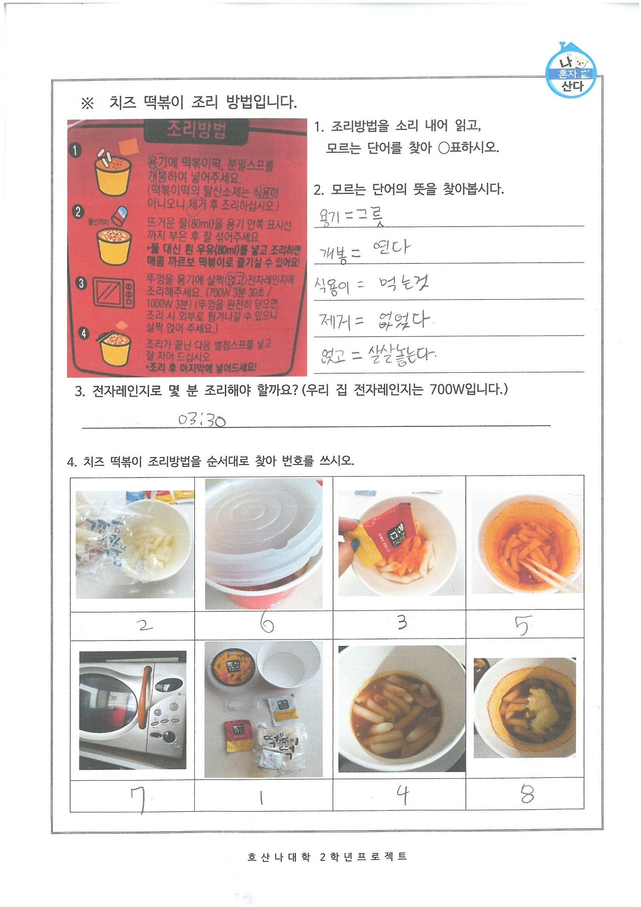 일단 적혀 있는 조리방법부터 온전히 이해하기 쉽지 않다. 용기, 개봉, 식용 등 일상적인 대화에서 잘 사용하지 않는 어휘들이 나열되어 있고, 물의 양이나 시간 등을 계산하는 일도 어렵다.