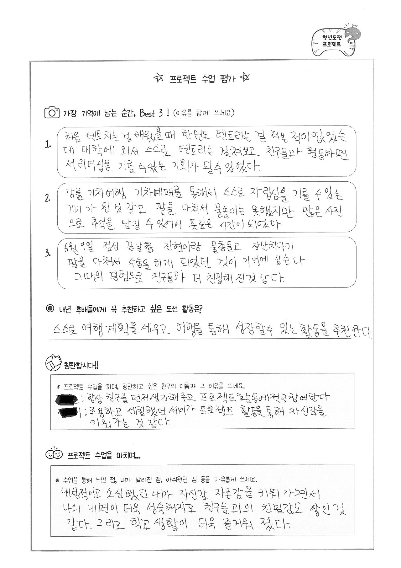 지하철을 타고 춘천으로 첫 여행을 떠났을 때, 그리 멀지도 않은 당일치기 여행이었음에도 학생들은 가족들이 아닌 친구들끼리 처음 와본 여행이라며, 진짜 대학생이 된 기분이라고 무척 뿌듯해하고 기뻐했다.