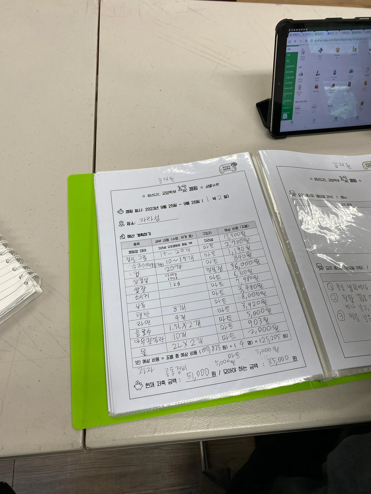 이어지는 수학 시간, 작성한 구매목록을 보며 예상비용을 계산했다. 마트 홈페이지에 접속해 구매할 물품의 양과 비용을 찾아보고 총예산을 구해 최종적으로 1인 비용까지 계산하는 활동이다.