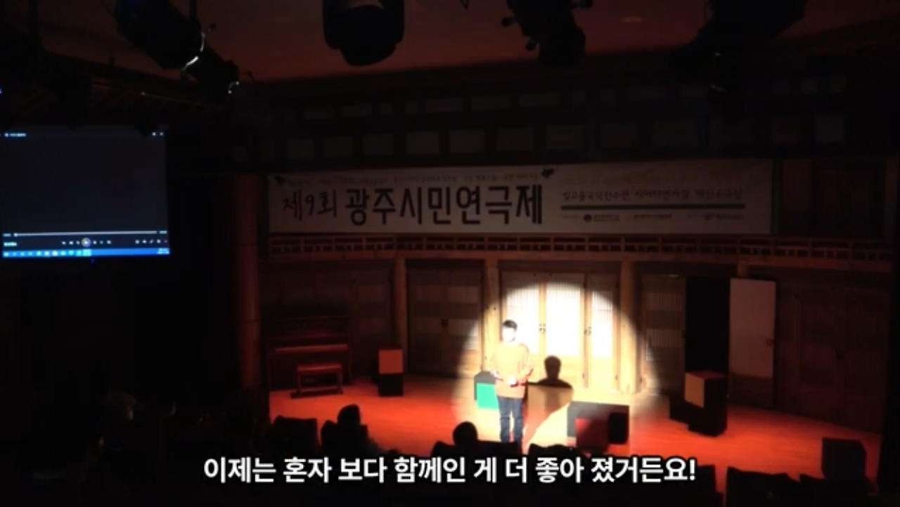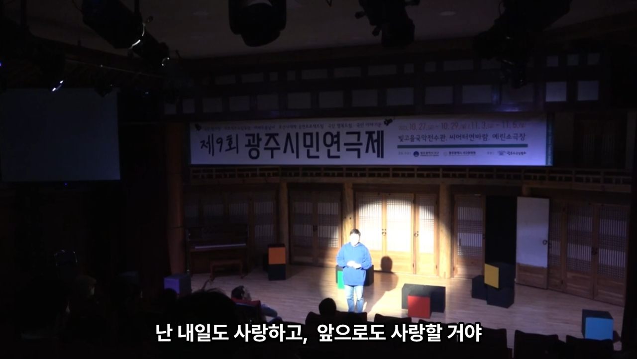 담담한 자기소개로 장면을 시작하는 M은 긴장한 기색이 역력했지만 머뭇거림 없이 자신의 역할을 소화했다. 관객 앞에서 말을 하고 노래를 부르는 것 자체가 아이에게는 엄청난 변화이고 성장이었다.