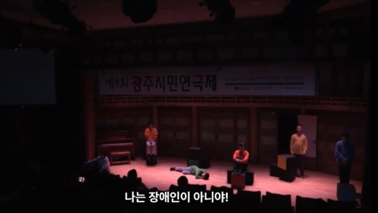 H는 ’장애인’을 향한 친구들의 부정적인 시선을 알았고, 그래서 도움반에 가기를 거부했던 학창 시절의 경험담을 극에 담았다.