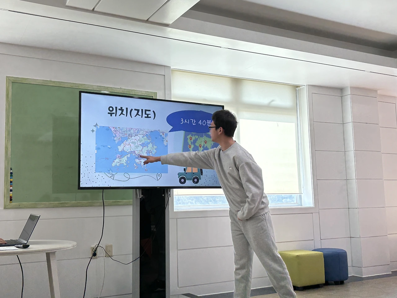 여행지에 대한 조사를 한 뒤에는 팀별로 PPT를 만들어 다른 친구들을 설득하기 위한 발표를 했다. 학생마다 컴퓨터를 다루는 능력에 차이가 크기에 PPT 샘플을 제공해 사진과 글을 채워 넣을 수 있도록 했다. 다양한 교과를 통합적으로 활용할 수 있는 것이 프로젝트 수업의 매력이다.