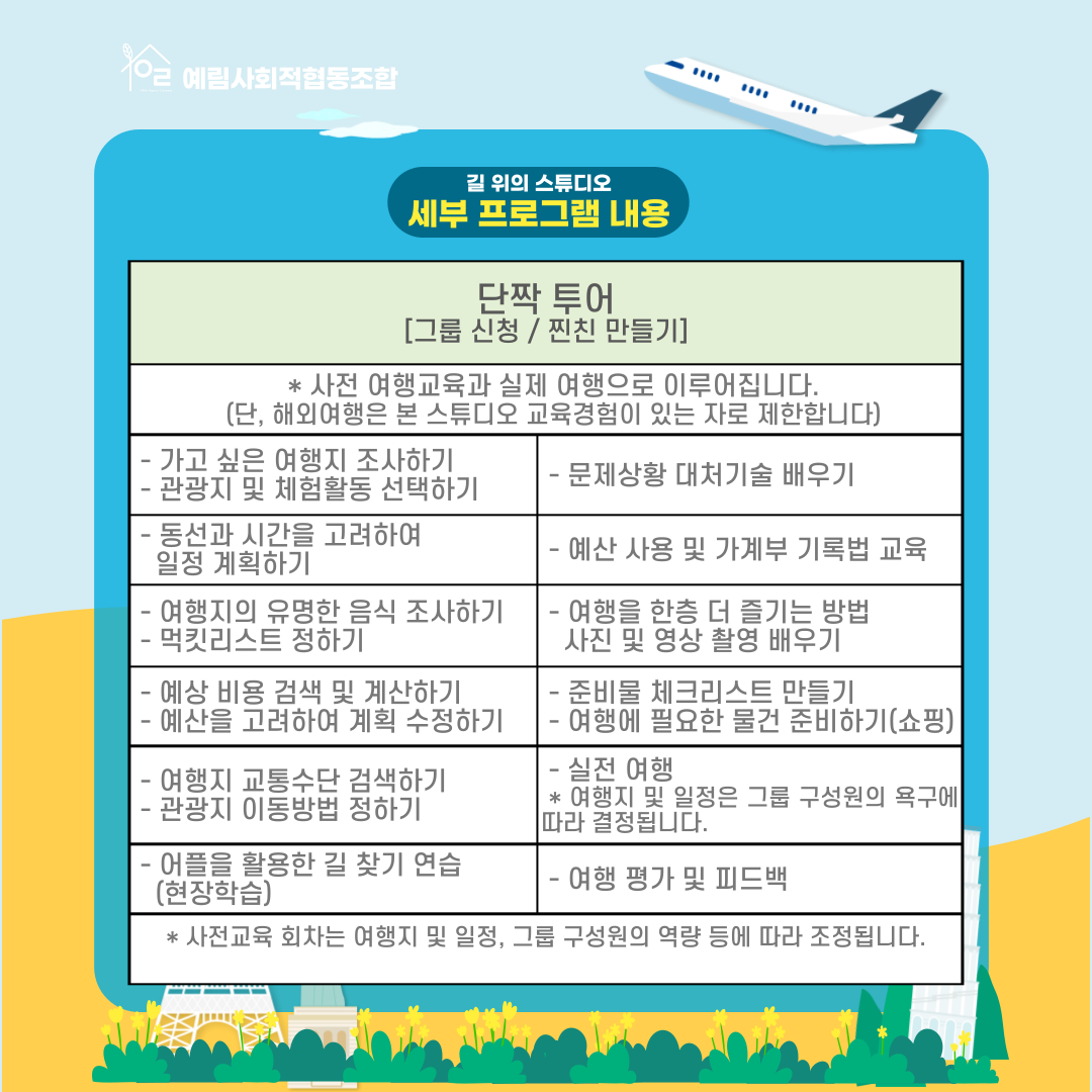 그리고 학교에서 학생들을 대상으로 꾸리던 여행과 달리 현재 참가자들은 대부분 근로를 하고 있는 직장인이다. 그러다 보니 여행 사전교육이나 여행일을 정하는데 다소 어려움이 있으나 월급을 모아 여행을 떠나고 여가를 의미 있게 활용할 수 있다는 점에서 이전의 졸업여행보다 훨씬 실제적인 교육을 할 수 있을 거라고 기대된다.