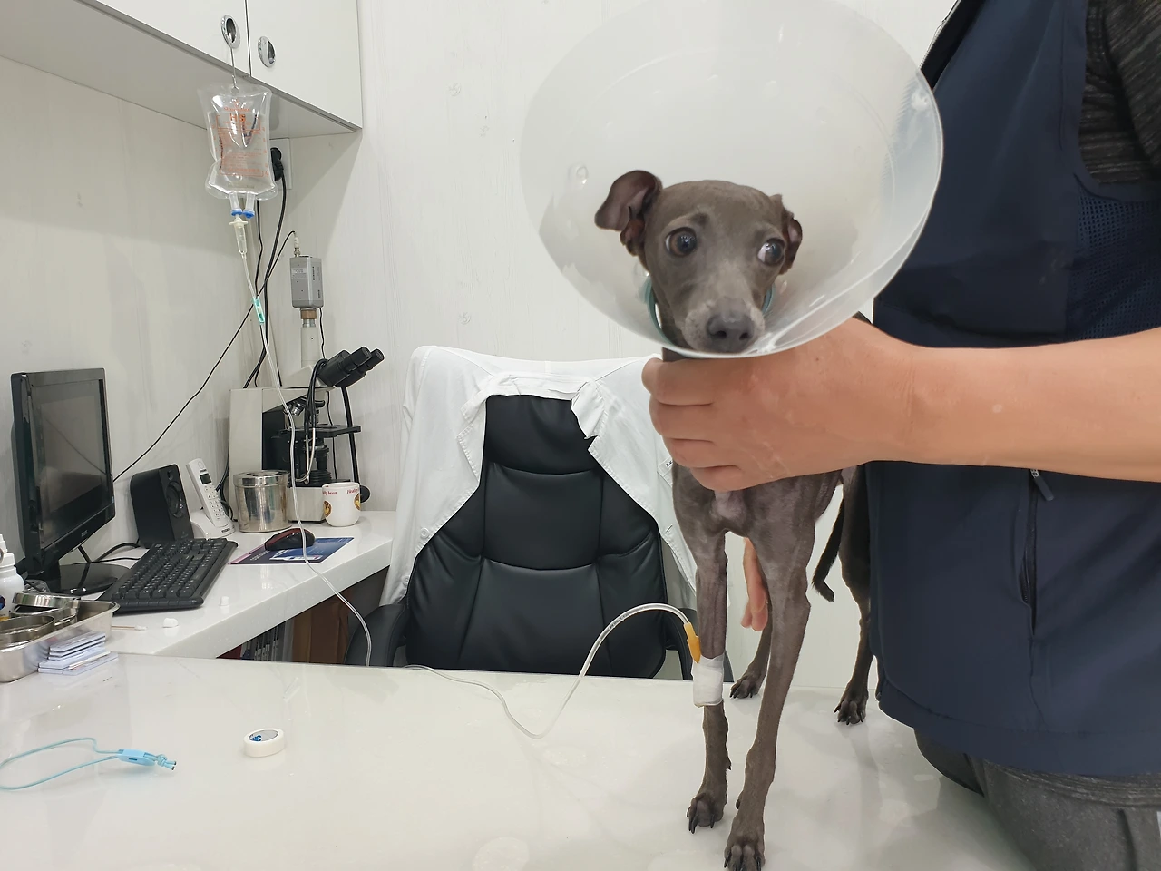 피검사 엑스레이 검사 몽땅 정상이라고 하니 다행이지만 우리 까를라는 탈수 증상이 있어서 링거를 한 대 맞으며 강아지 병원에 입원 중이다. 병원비는 29만 원.. 또르르....네가 안 아프면 되었지 뭐!