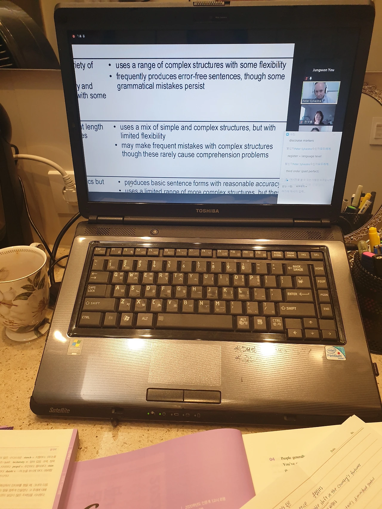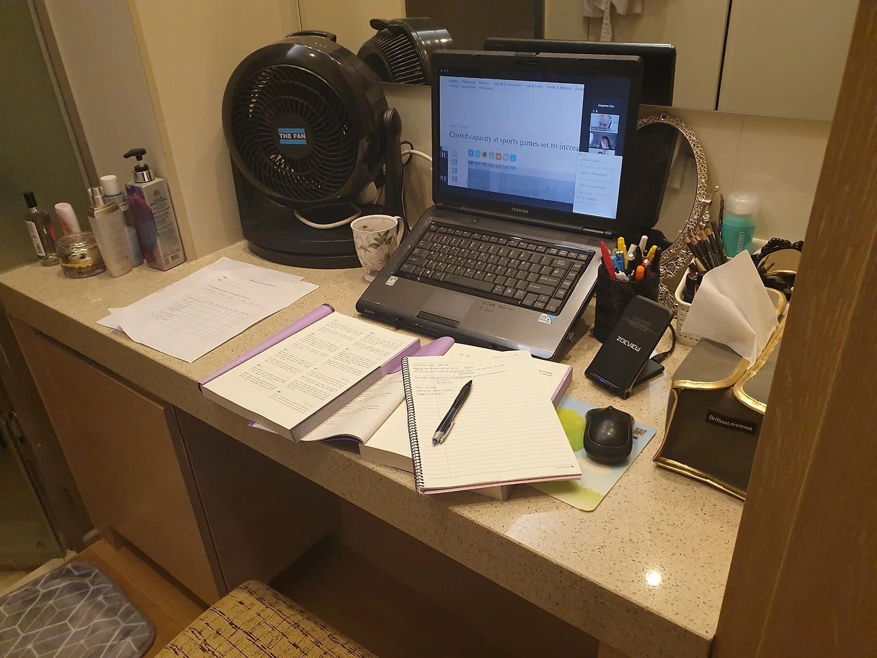 다음 주엔 남편의 기말고사가 예정되어 있어 종일 핸드폰을 들고 수업 듣다 내려놓기를 반복하며 필기한다고 설칠 내가 안쓰러웠는지 아빠는 구석에 처박혀있는 아빠의 오래된 노트북을 끄집어냈다. 오래된 컴퓨터답게 카메라 화소가 좋지 않다. 그 덕분에 줌 화상회의 상의 내 얼굴의 잡티도 가려진다. 오랜만에 해서 깨지는 영어발음도 음질이 나쁜 것에 살짝 묻어가기 좋다. 아빠는 내게 꼭 맞는 공부방을 꾸며주었다.