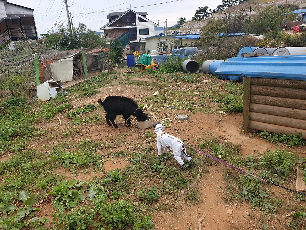 염소가 무서운 까르. 바다모래가 무서운 우리까르 피곤하기는 남동생도 마찬가지였다. 전날 야간근무를 서고 집에 돌아와 두어 시간 자고 석모도까지 운전해서 왔으니 말이다. 남동생이 잠든 사이에 올케는 내 생일 케이크를 사러 다녀왔다고 한다.