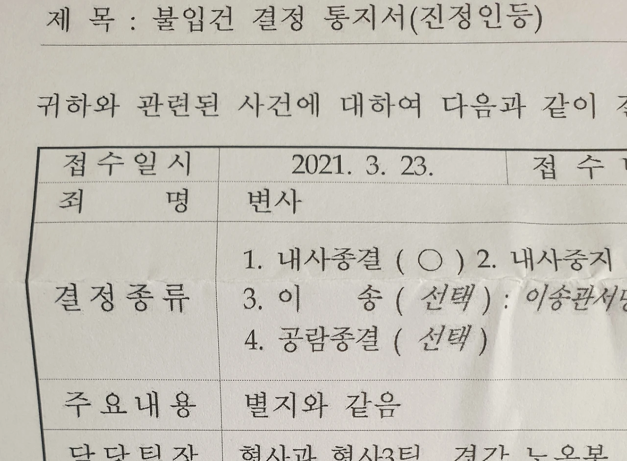 #30. 변사사건 관련 범죄 혐의 확인되지 않아 내사종결