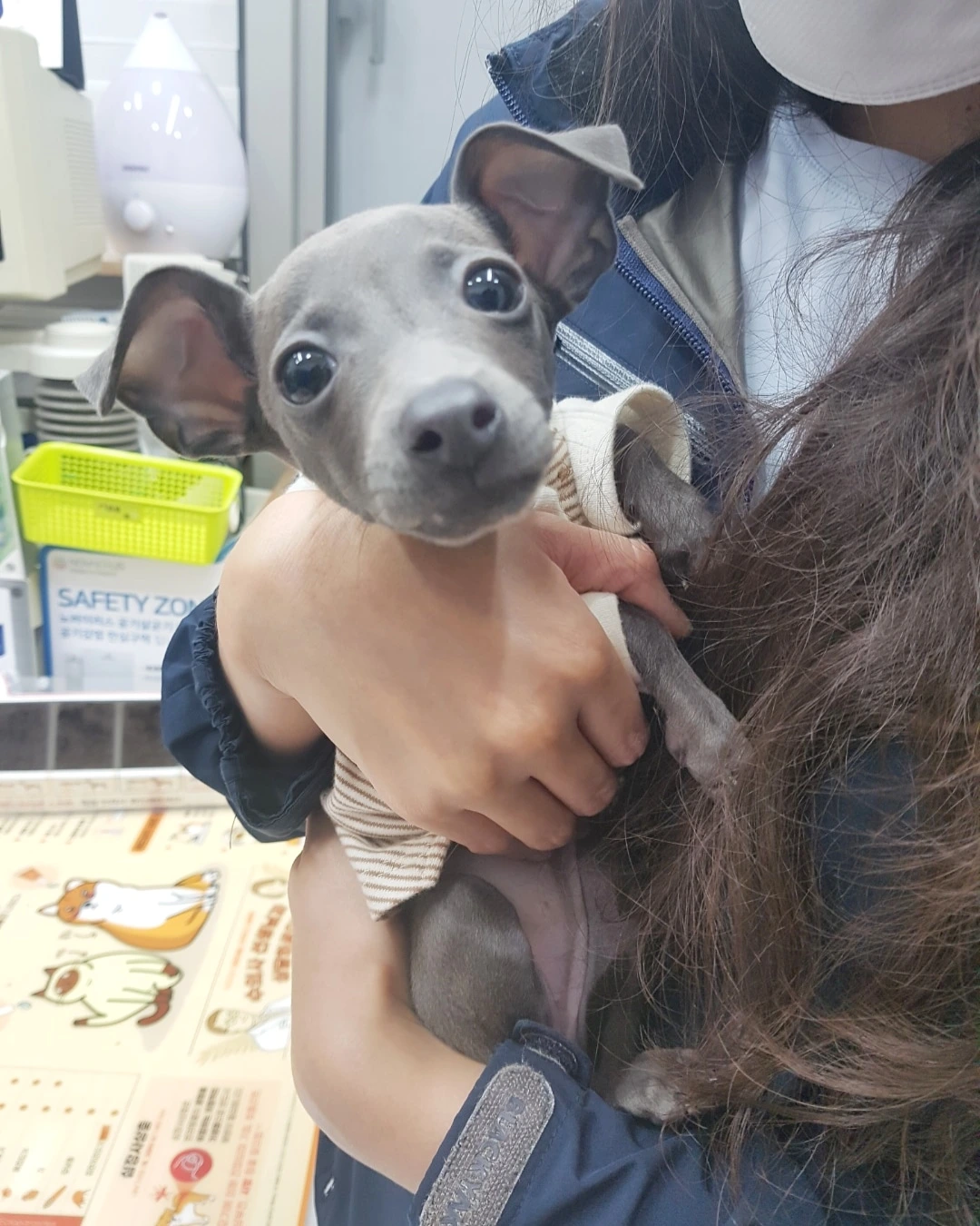 뼈만 앙상한 까를라. 원래 강아지 중에서도 이 종은 얼굴과 몸이 마르고 팔다리가 긴 것으로 유명하다. 에너지가 넘치고 상냥하다. 사람 손을 많이 타서 늘 곁에서 맴도는 우리 까르. 까르의 원래 이름은 <까를라>고 까르는 별칭이다. 부르기 좋아서 아빠가 어느 날부터 까르라고 부르기 시작한 것이 주로 부르는 이름으로 굳어졌다.