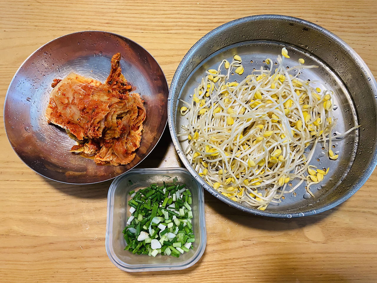 결혼 11년 차, 갑자기 그 음식이 떠올랐다. 엄마가 자주 해주셨는데.... 어떻게 만드는 거지? 인터넷으로 검색해 보니 생각보다 어렵지 않았다. 콩나물, 김치, 밥만 있으면 쉽게 만들 수가 있어 보여였다.