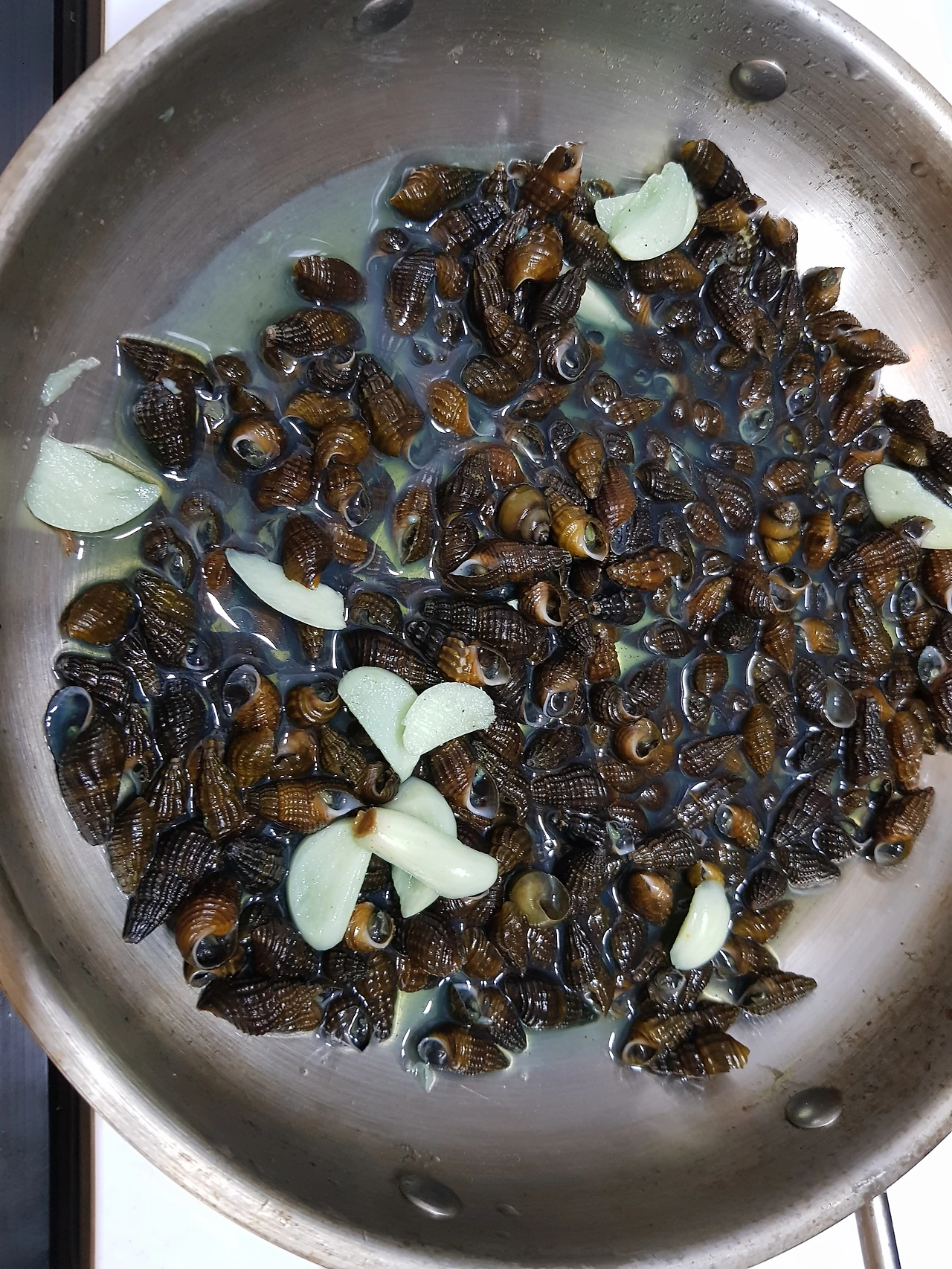 다슬기를 좋아하는 사람들도 많겠지만 나는 그 딱딱한 껍질 속에 파란 애벌레 비슷한 모양으로 있는 것을 이쑤시개로 쏙 빼먹는 남편을 볼 때마다 도대체 저걸 무슨 맛으로 먹는걸까 갸우뚱할 때가 많다. 남편은 다슬기를 정말 좋아한다. 어머니는 정성스레 삶아 푹 식혀서 남편 줄 요량으로 냉동실에서 꽁꽁 얼려 놓고는 우리가 내려갈 때마다 선물처럼 내어놓으신다. (감사합니다. 어머니.)