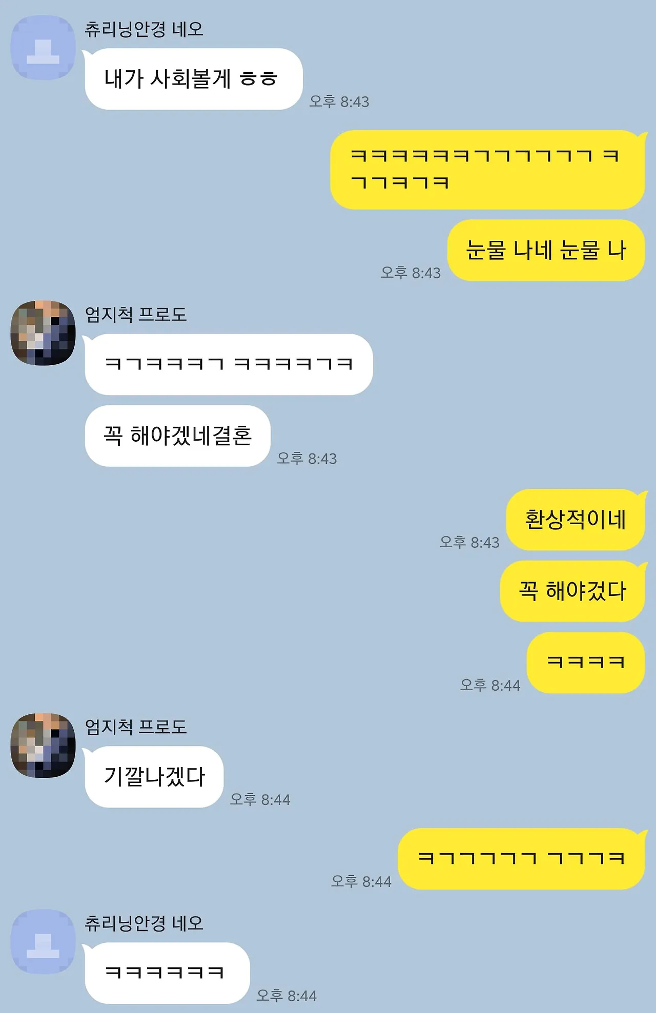 화장실에 깔끔 떨기 일인자인 G씨는 내가 결혼하면 축의금 삼십만 원에 옵션으로 화장실 청소를 해준다고 했다. 최고의 미모를 자랑하는 K씨는 내 결혼식 축가를 담당하겠다고 했다. 댄스까지 곁들여서. 때때로 명언을 씨부리며 내 명치를 때려주는 I씨는 가전제품을 사준다고 했다. 내가 아는 술꾼 중 가장 부지런한 H씨는 결혼식 사회를 봐준다고 했다.(나는 동의하지 않았지만.) 나는 그런 그들이 눈물 나게 고맙다.