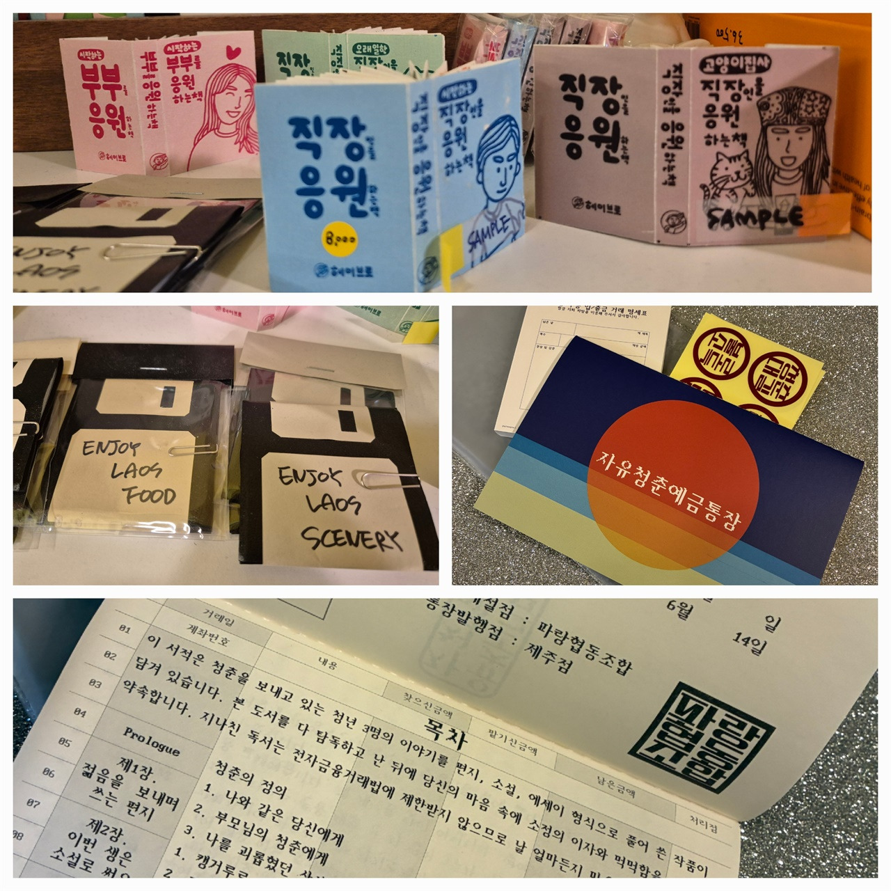 필자는 겸연쩍어하며 통장을 꺼내 열어보았다. 표지도 목차도 모두 진짜 통장 형식의 기발한 아이디어로 디자인된 책이었다. 부록으로 스티커와 파우치가 증정되는 세트 상품이었다. 통장 속에 담긴 책 내용이 너무 궁금했다.