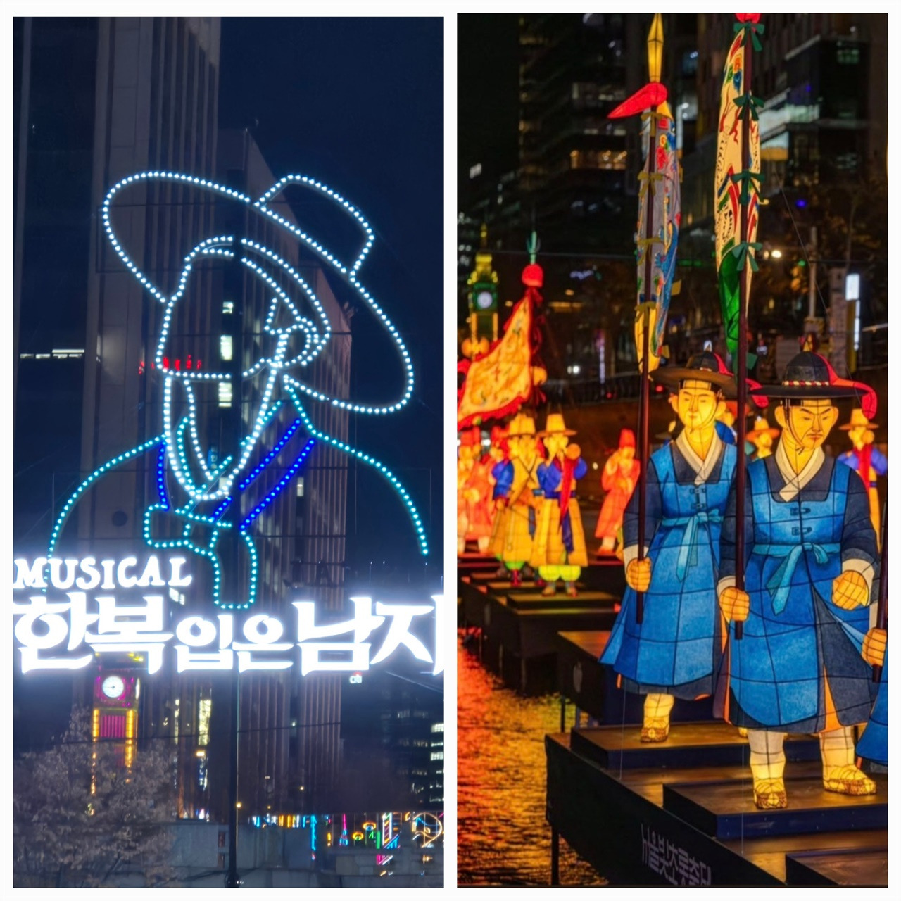 외국인 친구가 있다면 한복 와인 커버를 구입해서 선물하고 싶었지만, 안타깝게도 아무도 외국인 친구가 없었다. <K팝 데몬 헌터스>의 인기 덕분에 저승사자 컬렉션도 전시되어 있어 볼거리가 한층 많다. 광장시장 구경 후에는 청계천 빛초롱축제를 보며 산책하는 것을 추천한다.