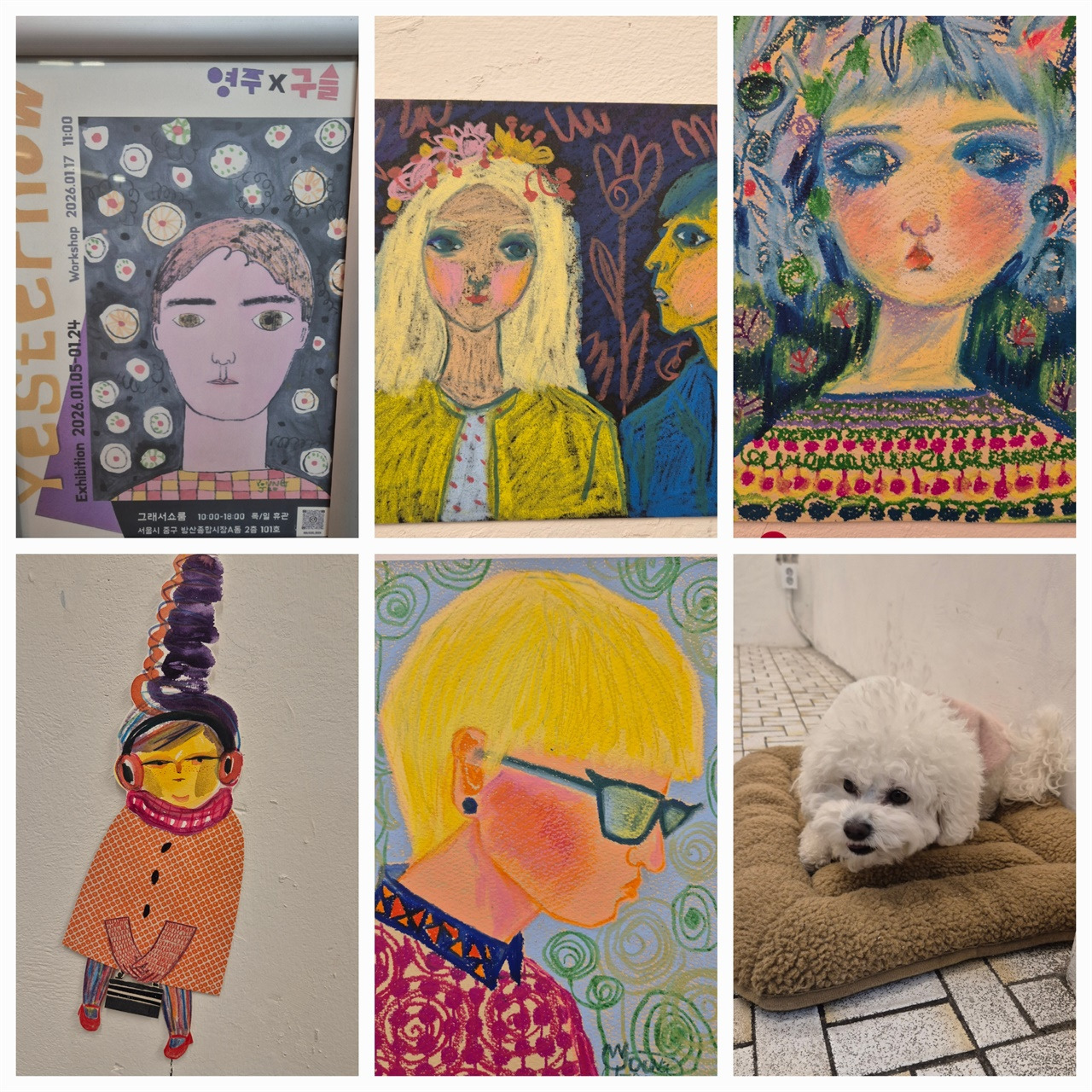 책 구경 후 근처에 있는 갤러리를 구경하는 것도 추천한다. 현재 구슬 작가의 그림과 종이 인형이 전시되고 있다. 오는 17일 토요일 오전 11시에는 버려지는 지난 달력을 활용한 콜라주 작업도 예정되어 있다. 초등 학령기나 책 혹은 그림에 관심이 있는 중고등학생과 책방을 둘러보고, 갤러리 관람 후 콜라주 작업까지 하면 완벽한 체험 학습이 될 것 같다.