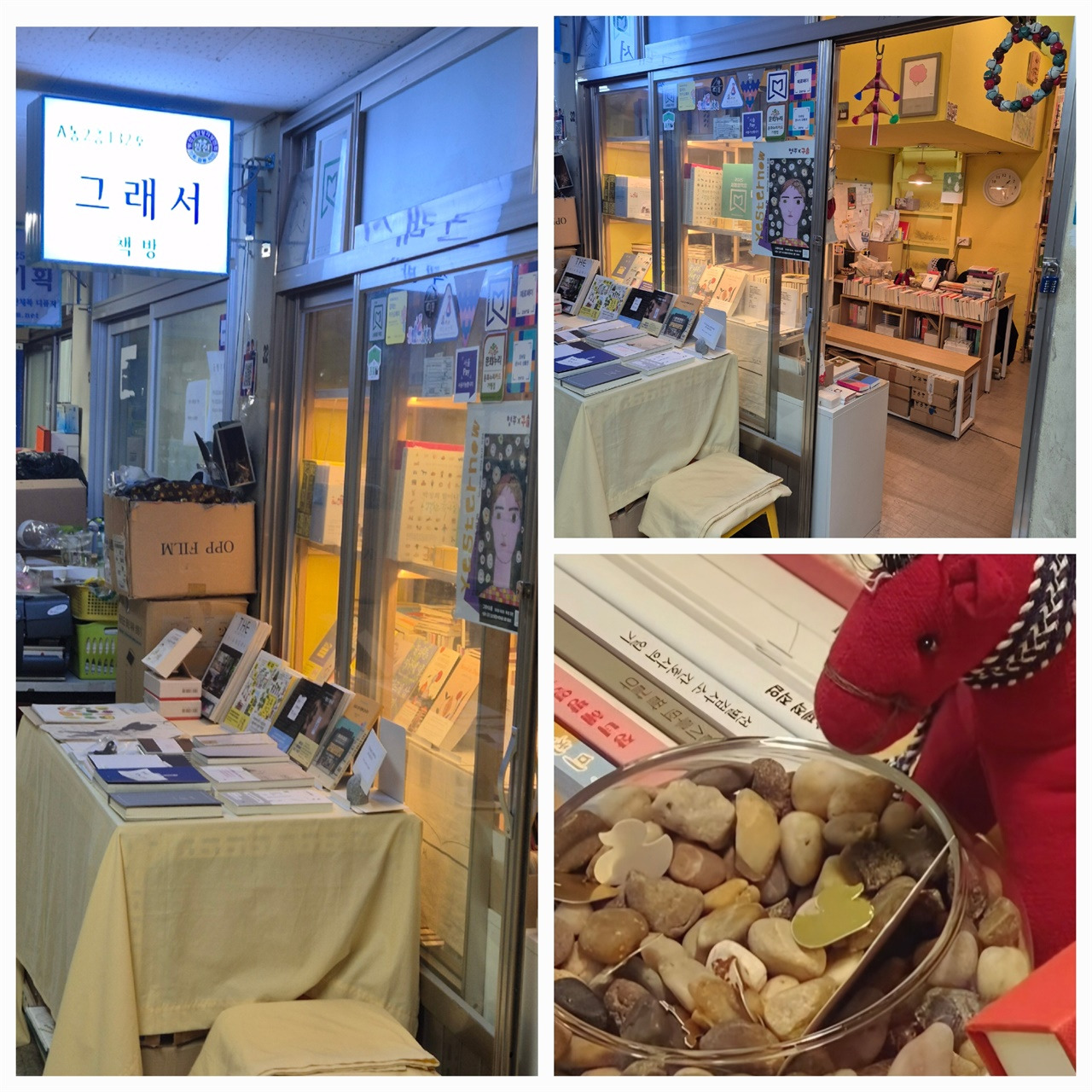 책방 주인의 유쾌한 농담과 센스 있는 마련한 돌멩이가 수고로움을 잊게 했다. 5평 남짓한 작은 서점은 대형서점처럼 화려하지 않았지만, 그곳만의 따스함이 곳곳이 묻어 있었다. 필자는 보물 찾기를 시작했다.