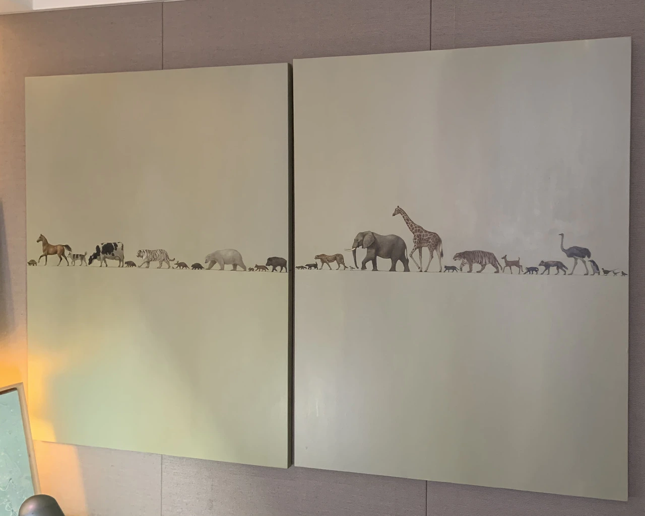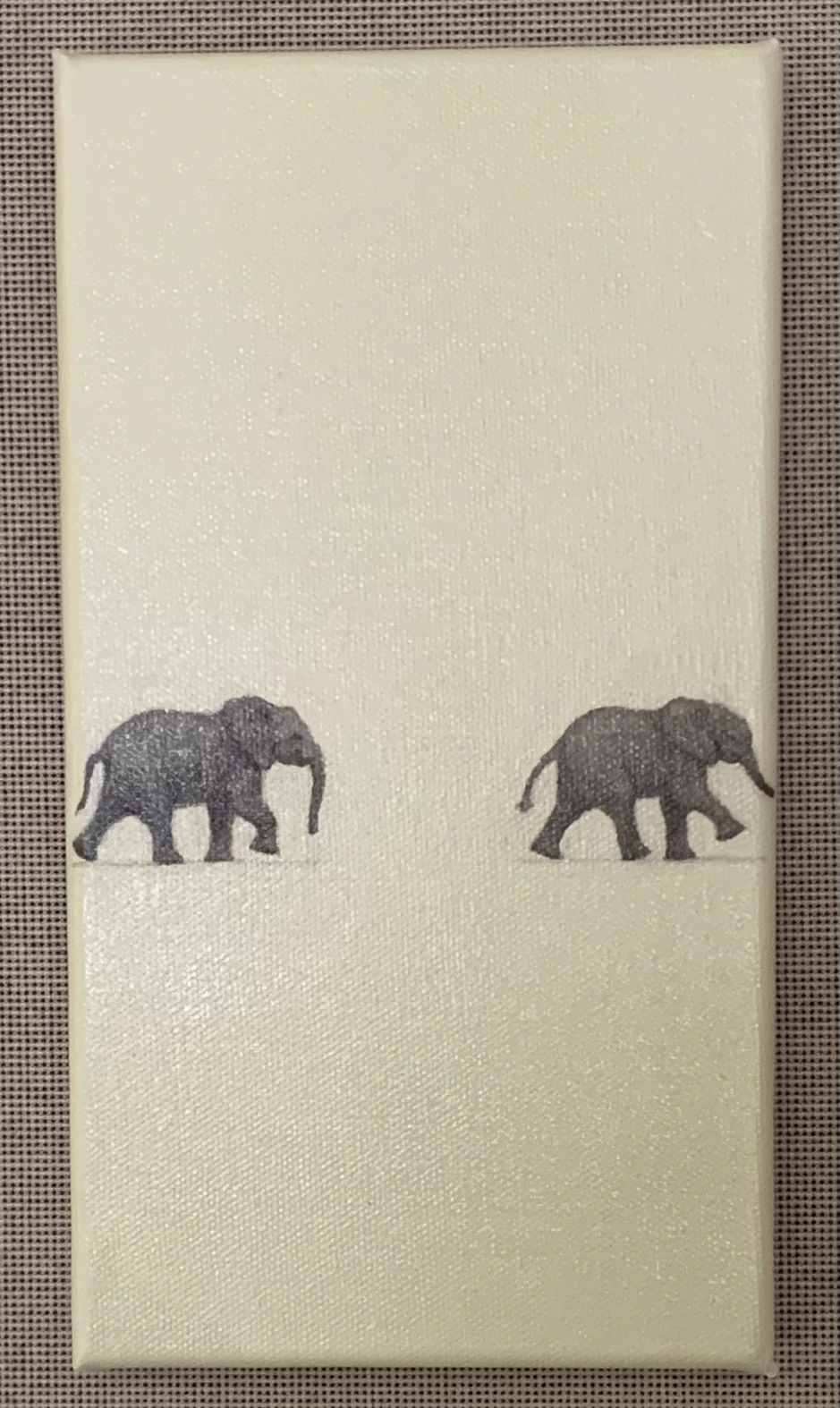 민지 작가님의 아기코끼리 두 마리 그림은 가격도 10만원이고 너무 귀여워서 진심으로 구매를 고민했다. 이정도로 맘에드는 그림이라면 돈을 주고 사도 되겠다는 생각이었다. 작품 전체의 크기는 고작 손바닥 두 개 정도였고 코끼리는 100원 동전만한 크기였다.