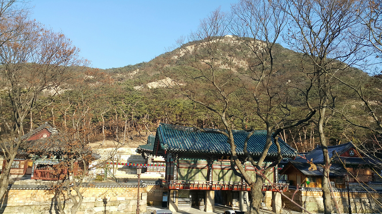 그런데 어찌 된 일인지 2017년 벽두에 찾은 진관사 대웅전 현판은 아직 옛날 그대로입니다. 궁금한 마음에 종무소에 들러 사실관계를 확인해보니 추사의 현판을 복원하는 것은 맞으나 정확한 일정은 말하기가 어렵다고 합니다. 무슨 사정이 있겠거니 하고 절문을 나서는데 추사의 글씨를 보지 못한 서운함 때문인지 찬바람이 휙 하고 얼굴을 스칩니다. 소걸음으로 천리를 간다고 하였으니 언젠가 되긴 되겠지 하고 생각하다가 또 가만 생각해보니 어린아이의 서툰 글씨처럼 천진난만하게 여겨지는 추사의 글씨가 한 점 흐트러짐 없이 단아한 모습을 하고 있는 대웅전에 과연 어울리기는 한 것인지 살짝 걱정이 되기도 합니다. 추사가 다시 살아 돌아와서도 여전히 옛날과 똑같은 필체를 구사할 것인지? 괜한 걱정 하나 늘려 담고 이웃 삼천사로 총총 발걸음을 옮깁니다.