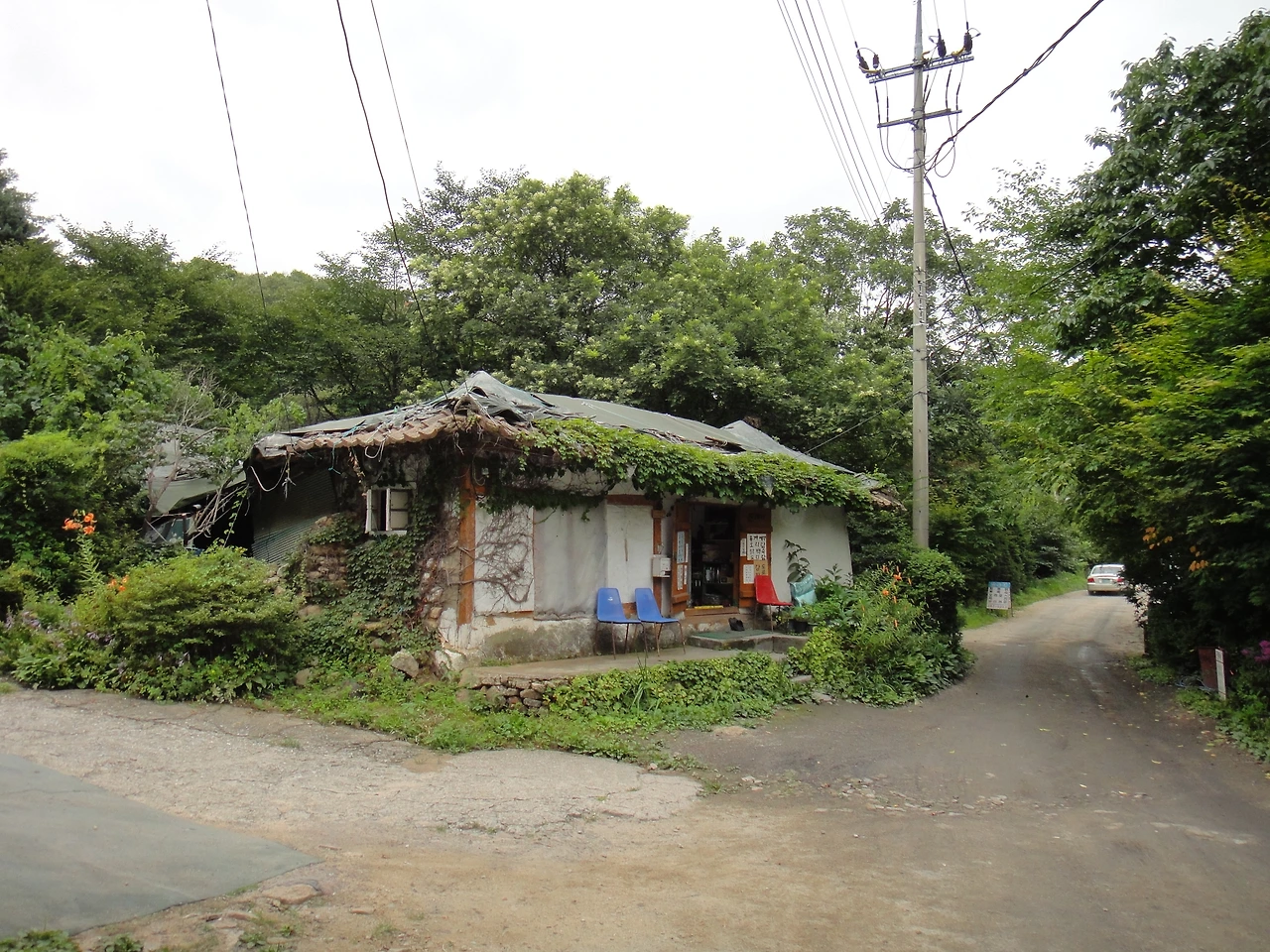 [사진] 사기막골 입구의 민가. 한장석의 「유청담기」(1870)에, “이튿날 아침, 삼각산 발치를 따라 서쪽으로 향했다. 계곡을 좇아 십여 리를 가서 동구에 이르니 뭇 봉우리들이 엄숙하게 손을 모아 읍하는 듯하였다. 살구나무 백여 그루가 있는데 비단 노을처럼 붉은 꽃을 활짝 피웠고 초가집 서너 채는 맑고 깨끗하여 은자의 거처 같았다.”라고 하였다.