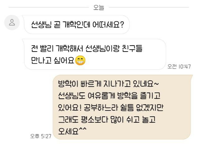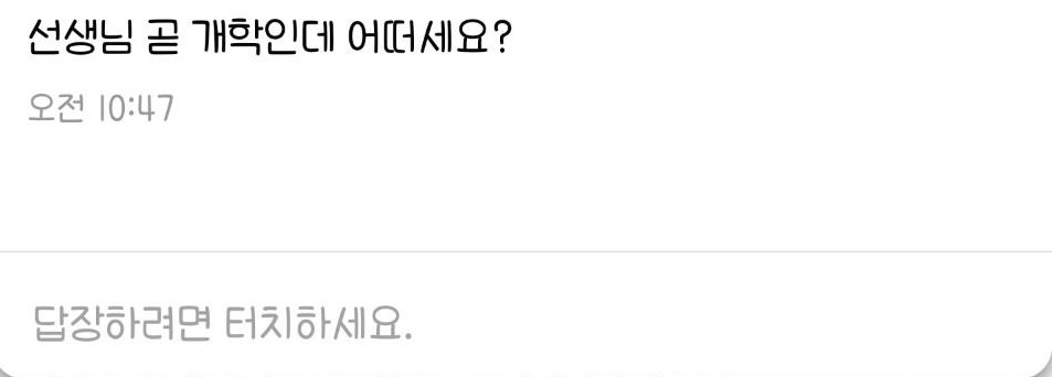 밑도 끝도 없이 '선생님 곧 개학인데 어떠세요?'라니...