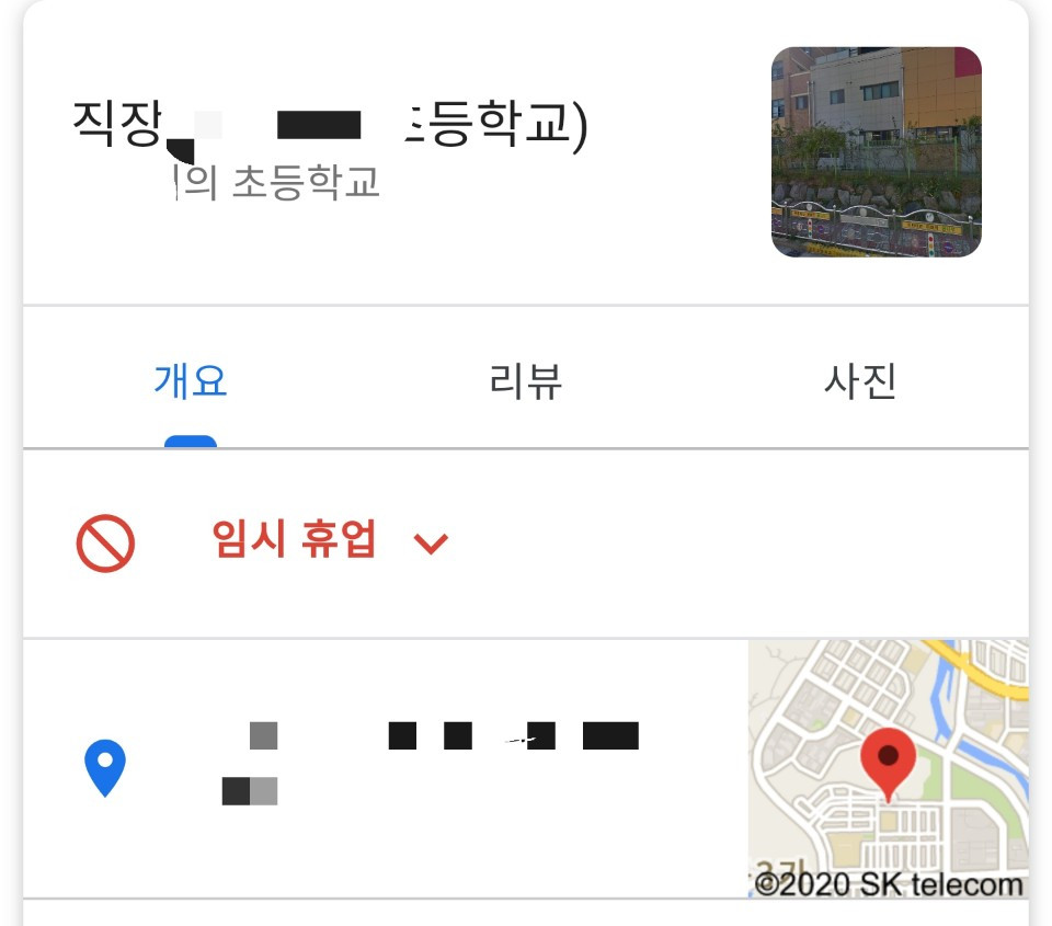 구글에 학교를 검색하면 임시휴업 상태라고 나온다