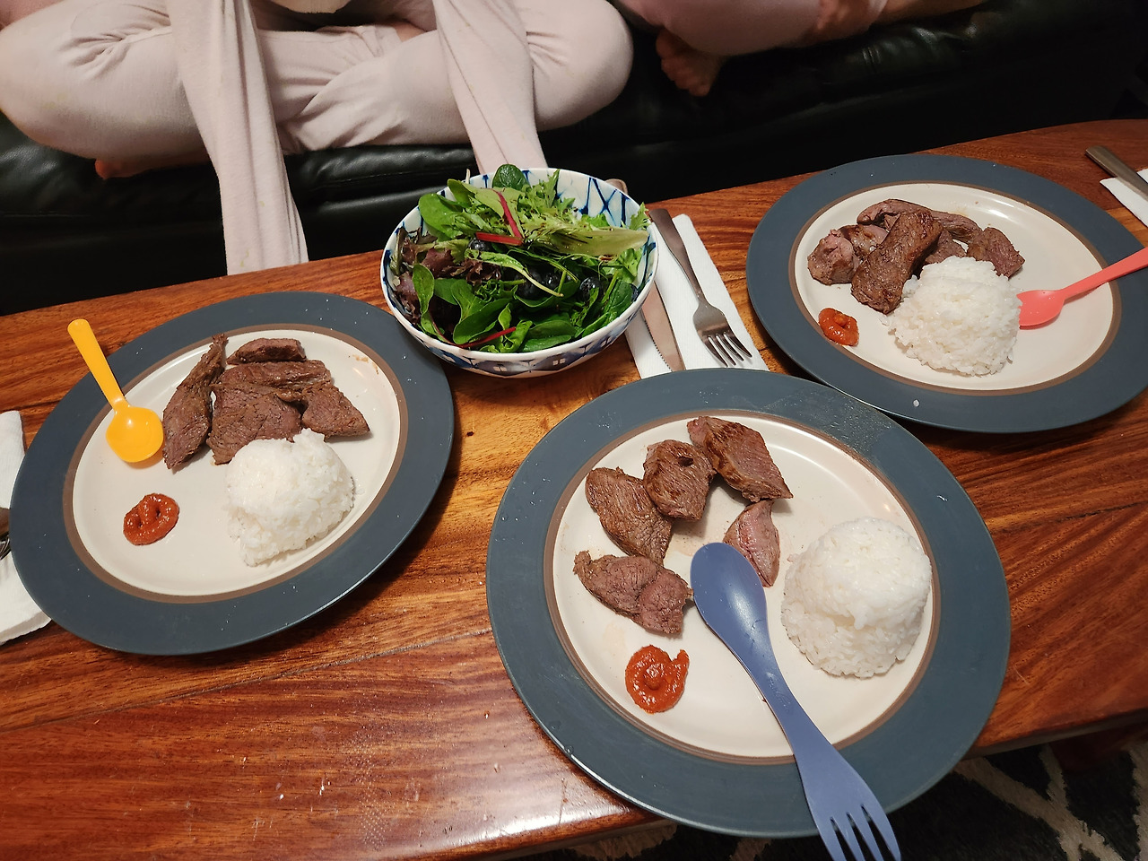 코스트코에서 스테이크 한 팩을 70불에 사서 한국 쌈장과 현지 바베큐 소스를 곁들여 3일 내내 구워먹었다.