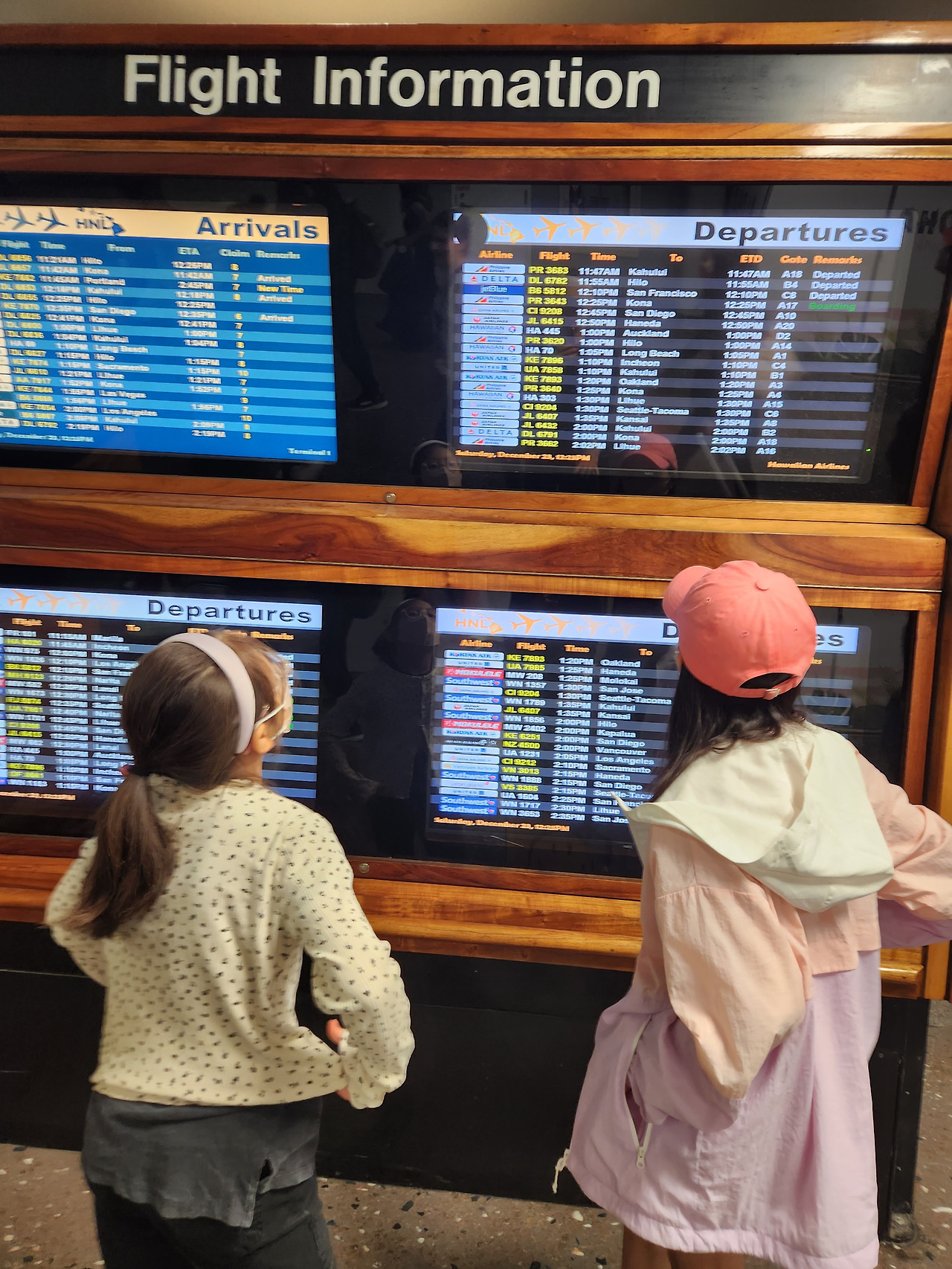 그동안 쌓아두었던 마일리지를 이용해 국적기를 타니 쌈밥과 떡이 나와 상공에서 입이 호강이다. 9시간이 넘는 비행 끝에 오아후에 도착했다. 도착하자마자 한숨 돌릴 새도 없이 바로 하와이안 항공으로 갈아탈 시간을 체크해야 한다.