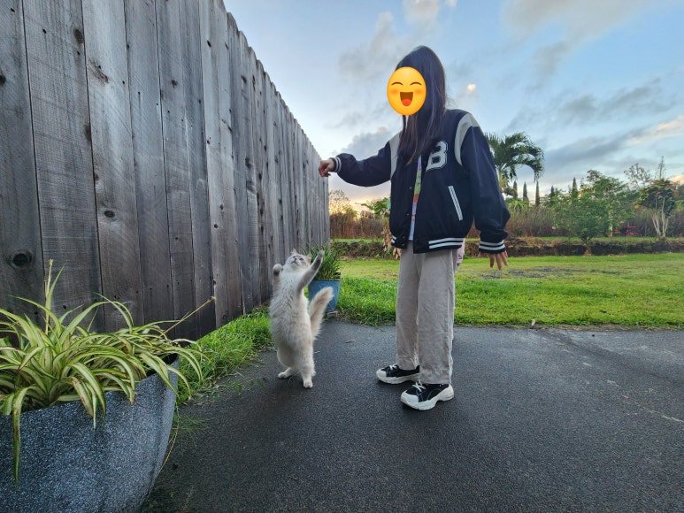 사방팔방 점프하고 애들하고 인사하느라 내가 사진 찍을 수 있게 호스트가 간식 들고 서있는 중.