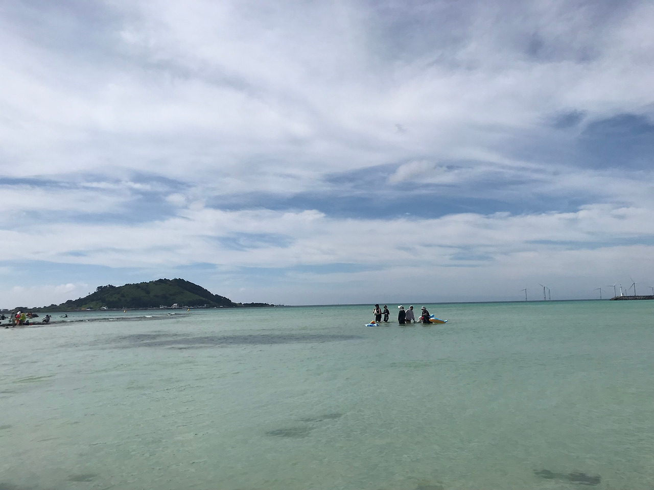 협재 해변의 하얀 모래가 너무 고와서 시멘트로 쓰이지 않는다는 말씀에 그럴만 하다며 고개 끄덕인다.