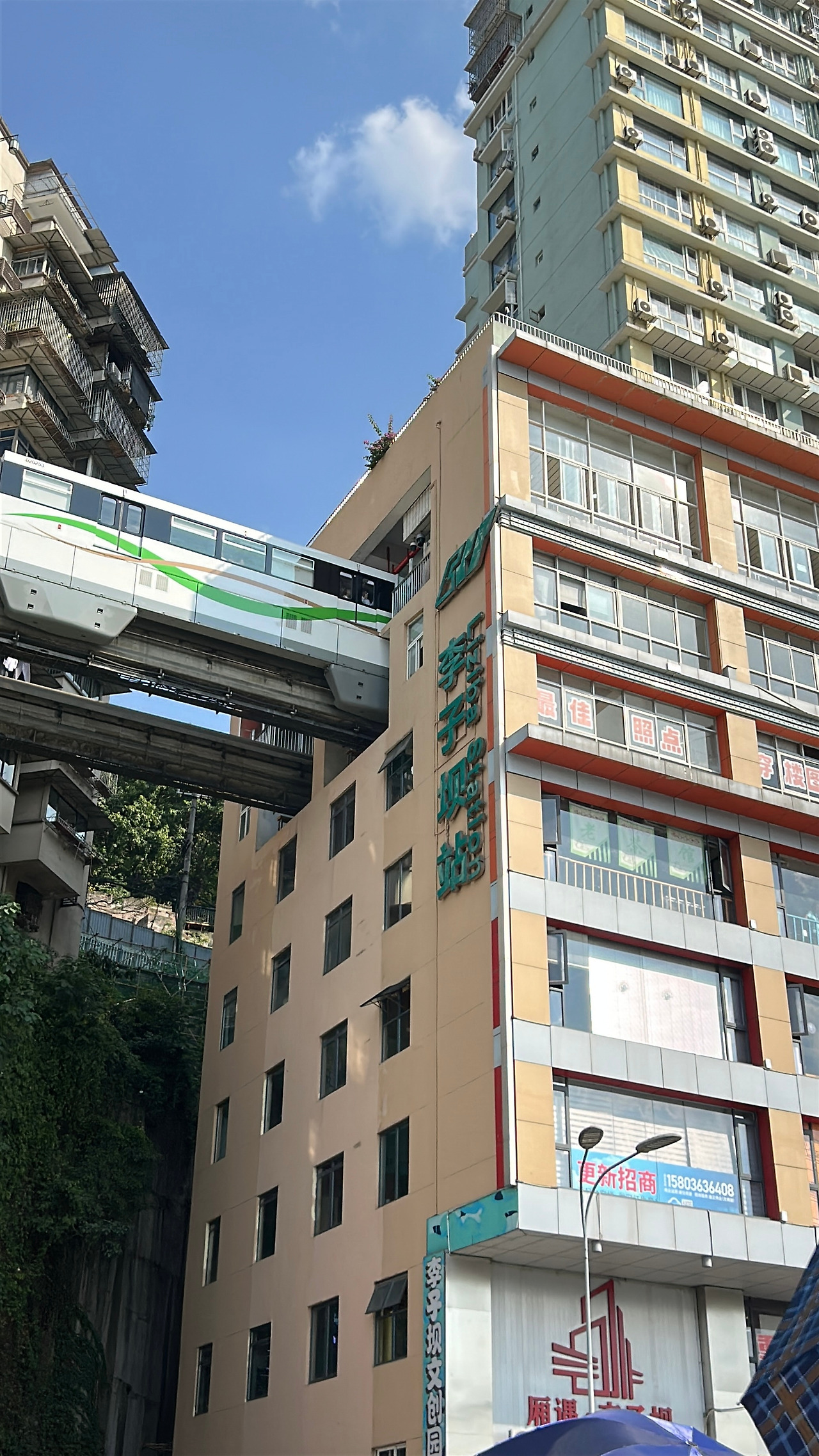 충칭 지역 신문사 기자와 인터뷰할 수 있는 좋은 기회가 있었는데, 그때 '충칭의 첫인상은 어때요?'라는 질문을 받았다. 거대한 빌딩과 그 사이를 통과하는 전철과 도로, 인도들이 교묘하게 얽혀 마치 예술작품을 보고 있는 것 같다.