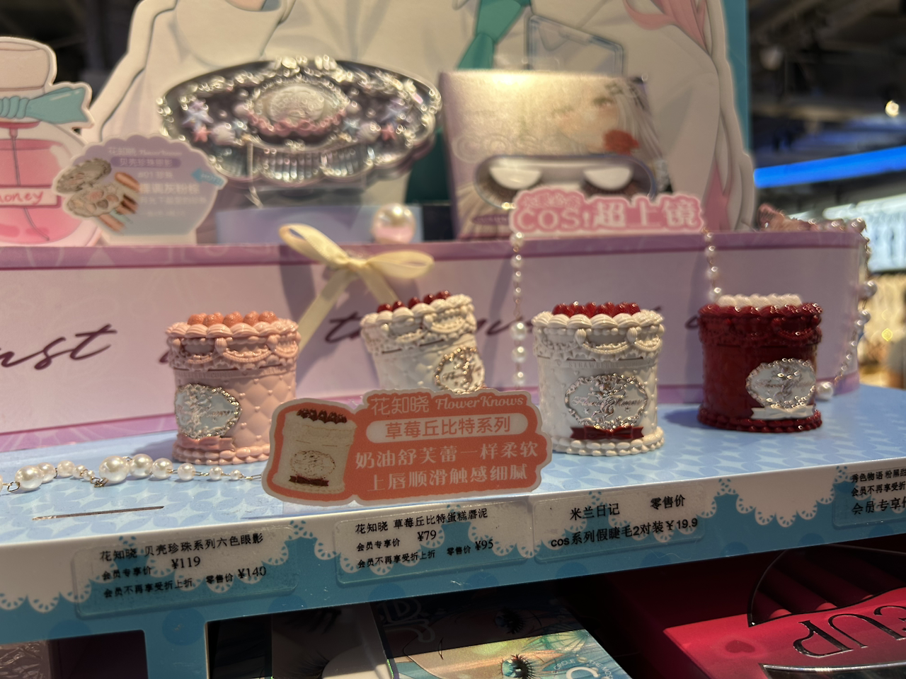 한편, 중국 로컬 브랜드들의 성장세도 눈에 띄었다. 매장 안에서 가장 눈길을 끈 브랜드는 Flower Knows였다. 동화 속 공주풍 패키지는 그 자체로 하나의 굿즈 같았다. 실제로 한국에서도 웃돈을 주고 구매한다는 이야기를 들었는데, 현지에서 직접 보니 그 말이 실감이 났다. JUDYDOLL은 귀엽고 화려한 패키지로, Carslan은 깔끔하고 실용적인 디자인으로 각각 다른 매력을 보여주고 있었다. 샤오홍슈(小红书)와 도우인(抖音), 그리고 왕홍(网红) 마케팅 덕분에 젊은 층의 주목을 받고 있었다.