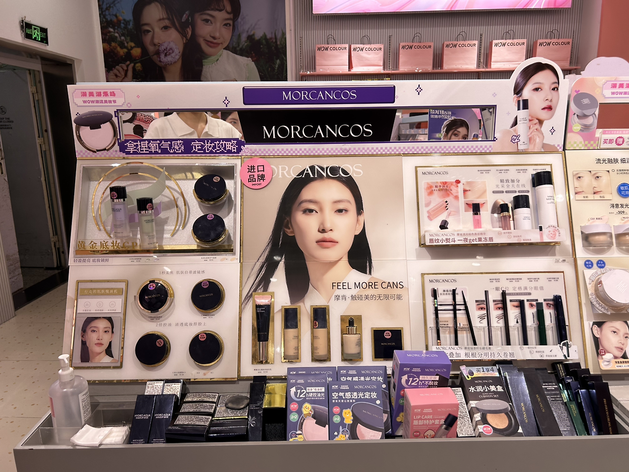 직원은 나에게 한 매대 앞으로 데려갔는데, MORCANCOS라는 브랜드였다. 화 잘 알 친구들에게 물어봐도 모르는 브랜드였다. 하지만 중국 소비자들은 이 한국 화장품을 “품질이 좋다”, “자연스럽게 표현된다(妆感很好)”고 평가하고 있었다. 또한 약 300위안대의 프리미엄 가격에도 불구하고 성분 안전성과 효능을 강조하며 고급 K-뷰티로 인식되고 있었다. 앰플형 파운데이션과 쿠션 제품이 제일 인기가 많았고, 중소기업임에도 대형 브랜드와 나란히 매대에 진열된 모습은 꽤 인상 깊었다.