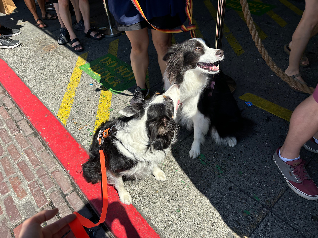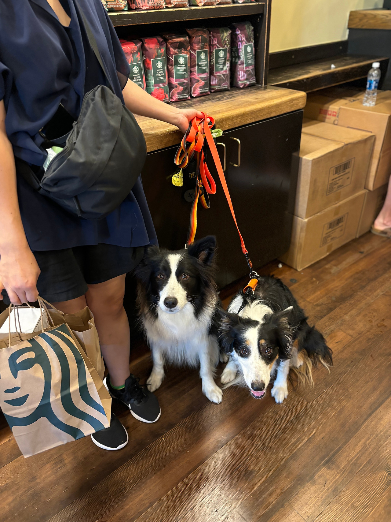 스타벅스 1호점은 긴 줄에 대기 시간도 길다고 하여 시애틀에 도착한 다음 날 아침 일찍부터 퍼푸치노를 먹으러 갔다. 오전 시간인데도 역시 줄이 길게 있었다. 복잡하고 좁은 길에 유동 인구도 많아서, 우리는 당연히 한국에서처럼 강아지들을 한쪽에 잘 서게 하고 줄을 짧게 잡고 있었다. 그런데 지나가는 사람들도 강아지들을 잘 피해서 가주고, 기다리는 사람들도 앞뒤로 강아지들이 있다고 공간을 배려해 주었다. 우리 뒤에는 꼬마 숙녀가 있는 가족이 있었는데, 긴 대기 시간과 내리쬐는 햇빛에 꼬마가 힘들어했다. 몸을 배배 꼬고 움직이다가 아주 살짝 강아지들 건드렸다.