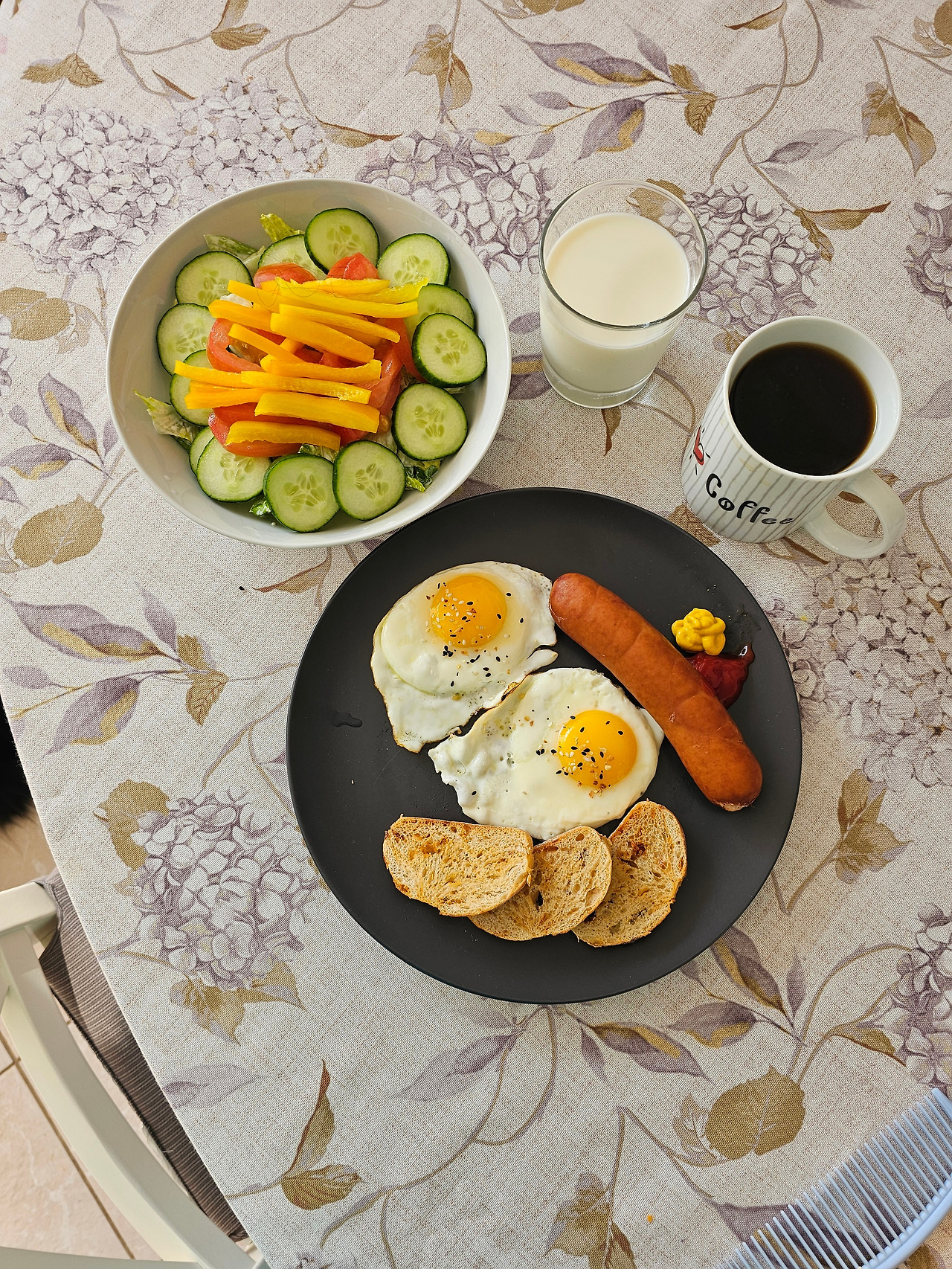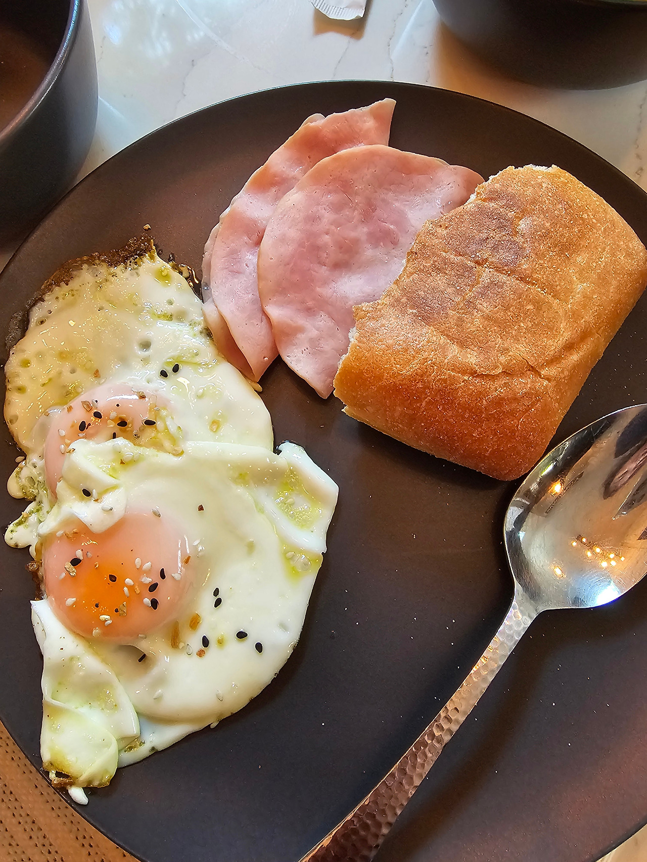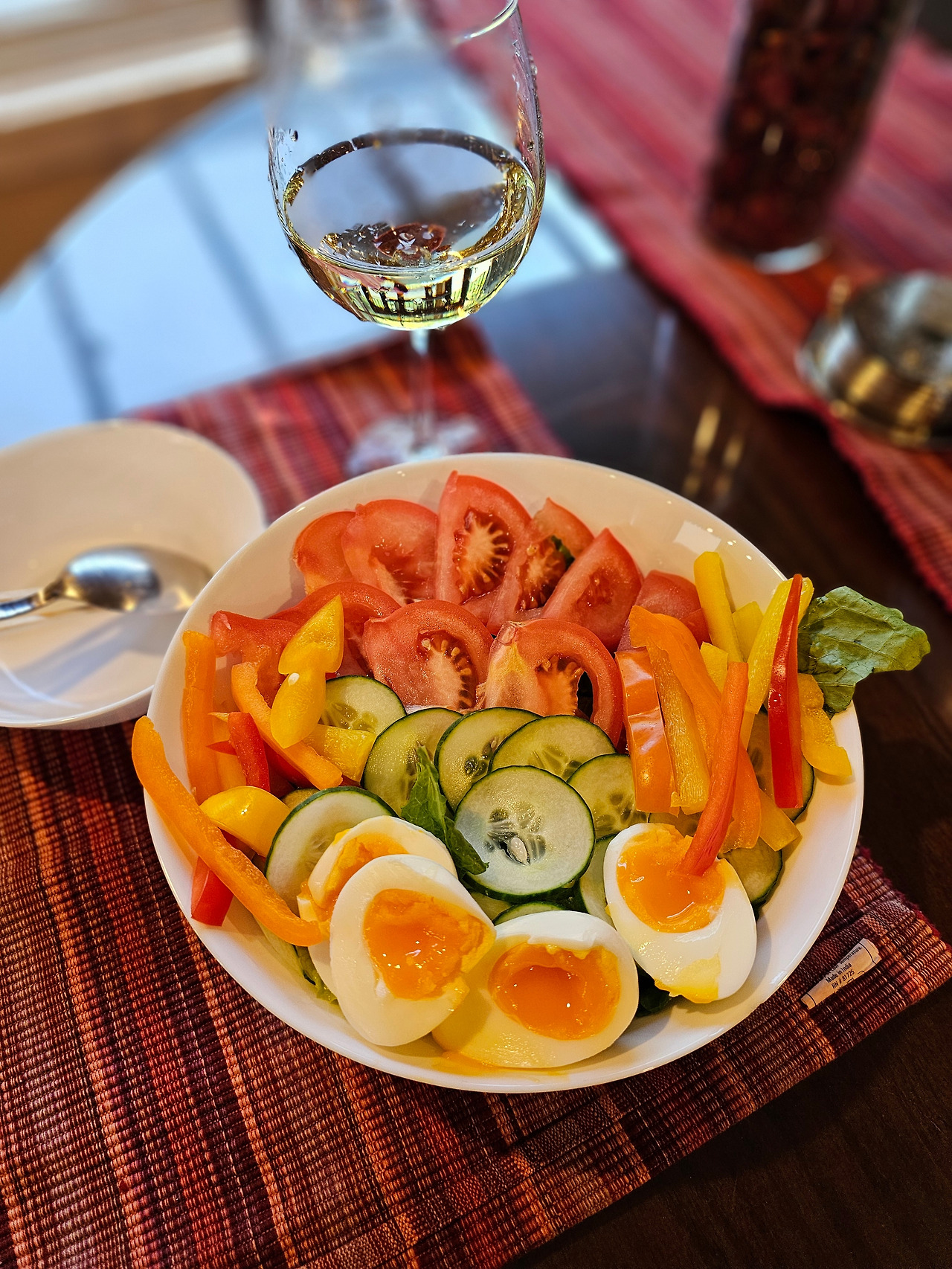 마지막 날은 있는 재료를 다 소진해야 했다. 그래서 샐러드를 산처럼 쌓아 먹었다. 남은 달걀도 삶아서 듬뿍 넣었다.
