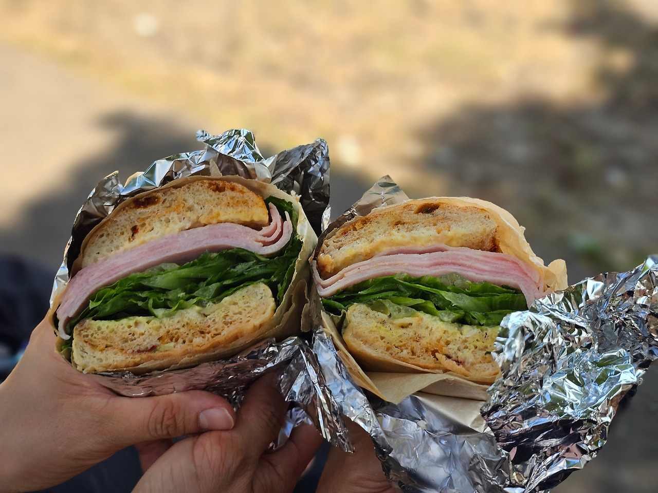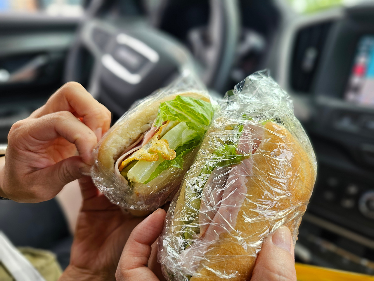 로메인을 한번 사면 양이 상당하기 때문에 샐러드로 다 소진하기 어려웠다. 나는 장을 볼 때 '재료는 겹치고 맛은 다르게!'를 늘 생각하는 편이다. 그래야 다양하게 먹으면서 식비를 아낄 수 있다. 메인을 샐러드로 잡았고, 밥은 못 먹으니 빵으로 탄수화물을 대체했다. 그리고 먹고 남은 빵과 채소들로 점심 샌드위치를 쌌다. 여기저기 차로 이동해야 하니 중간에 간단히 먹을 수 있는 도시락이 제격이었다. 또한 캐나다엔 넓고 좋은 공원들도 많으니, 강아지들과 산책하다가 밴치에 쉬며 점심 먹는 여유도 누릴 수 있다는 장점도 있었다. 게다가 샌드위치로 남은 식재료를 다 쓸 수 있으니, 숙소를 옮길 때마다 계속 신선한 음식을 해 먹을 수 있었다.