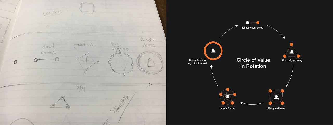 2. 아이디어는 어떤 흐름으로 이어지고 왜 ’서클’이라는 컨셉이 나왔는가?
