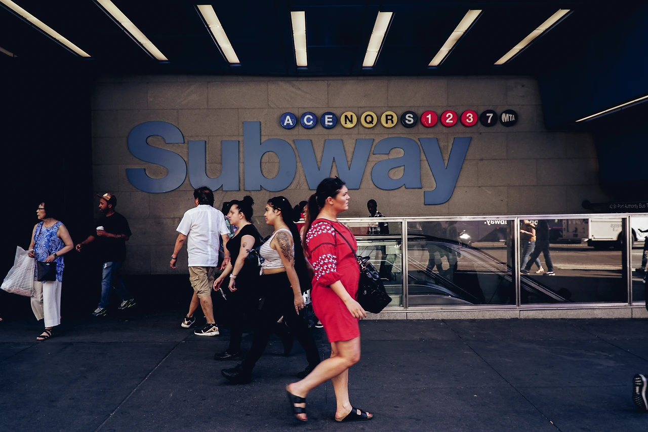 다음은 위치. 맨해튼 남북방향의 가운데쯤인 미드타운에 위치했고 구글맵에서 우리가 찜해놓은 스팟들 중 많은 수가 이 숙소 주변에 있었다. 때문에 자세한 거리 계산은 하지도 않고 예약했는데 막상 가서 보니 뉴욕 초심자의 입장에서는 최적의 입지였다. 우선 바로 앞에 노선 3개가 지나는 지하철역이 위치했고 길을 건너면 미국 최대의 버스 터미널인 포트 오소리티 터미널(Port Authority Bus Terminal)이 있다. 그리고 도보 이동이 가능한 거리에 타임스퀘어, 브라이언트 파크, 록펠러센터, 엠파이어 스테이트 빌딩, 그랜드 센트럴 터미널 등등 많은 관광지가 밀집해있었다. 사진에서 보듯이 그냥 시내 한복판이다. 여행을 하다가도 쉬고 싶으면 부담 없이 호텔방에 들어와 낮잠을 잘 수도 있을 정도였다.