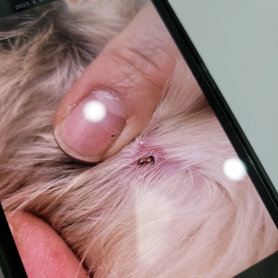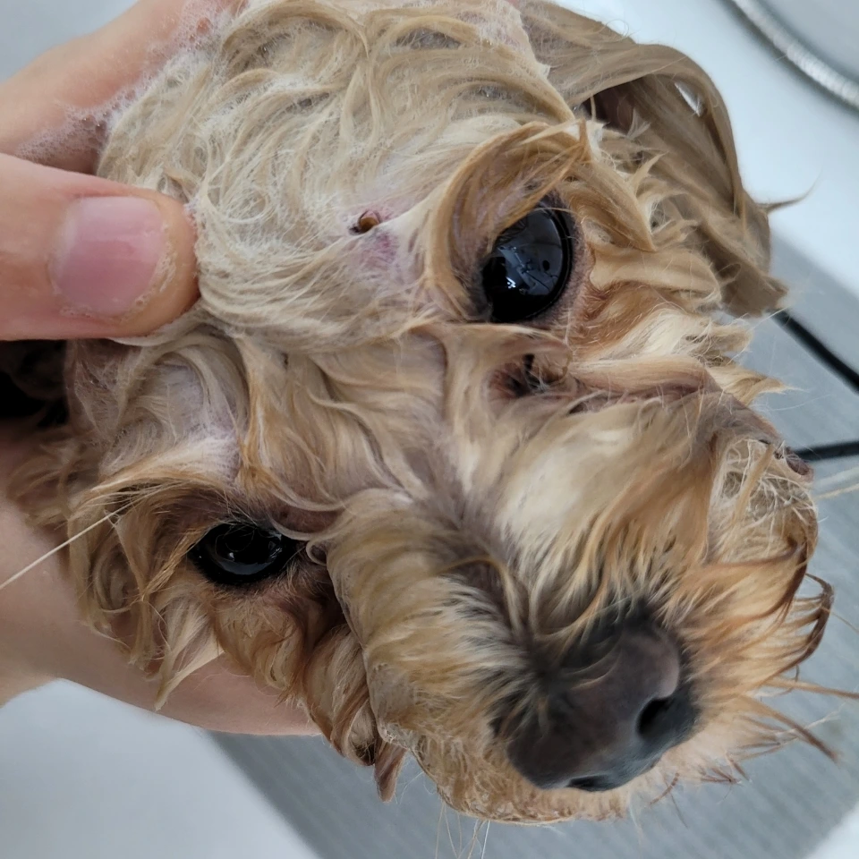 로이를 맡기고 30분 정도 시간이 지나고, 샵에서 전화가 왔다. 로이 이마에 진드기가 붙어 있는데, 떨어지지 않는다고 했다. 당장 갈 수 없는 상황이었는데, 원장님이 더 다급하셨는지 동물병원에 직접 데리고 가시겠다고 했다. 동물 병원에서도 상황을 수시로 알려주셨다.
