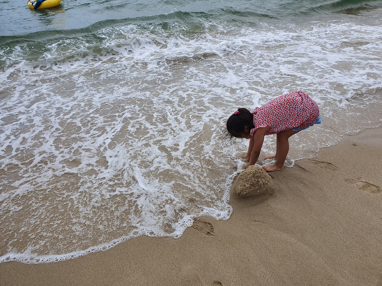 해운대 해변가에서 모래 놀이 중인 작은 딸