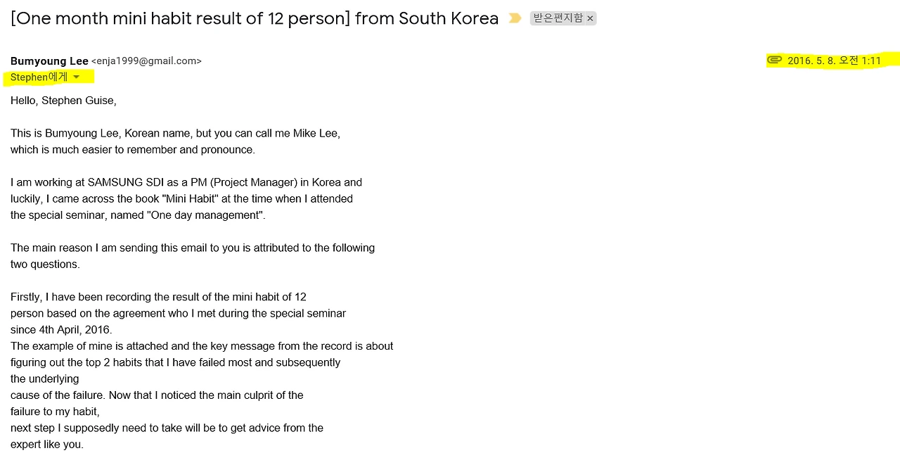 [습관의 힘, 찰스 두히그 답장 원본 이메일]
