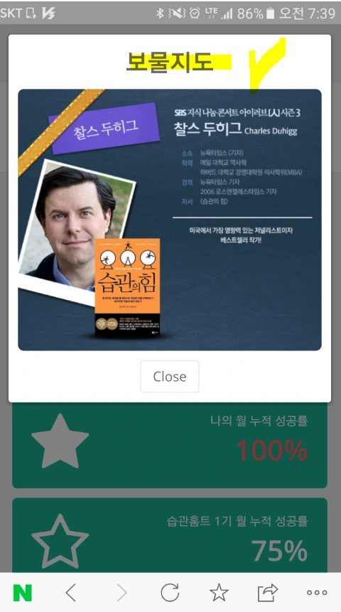 제가 습관 프로그램을 운영하면 자체 개발한 '습관홈트 일일 관리 시스템'에 로그인하면, 나의 보물지도가 인사를 합니다. 이 보물지도는 내 목표를 다시 시각적으로 환기시켜 줍니다.