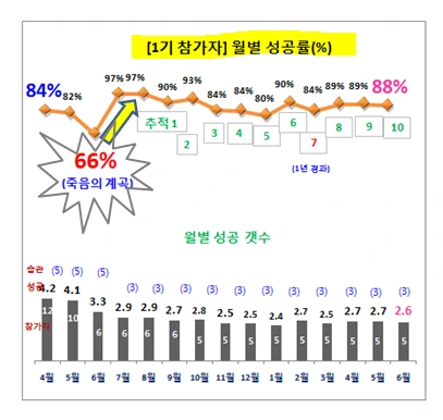 습관홈트 프로그램에 참가한 참가자의 생존율이 약 44%나 되니 미국 설문 조사 기관이 발표한 8% 성공률보다 5배가 넘는 수치다.