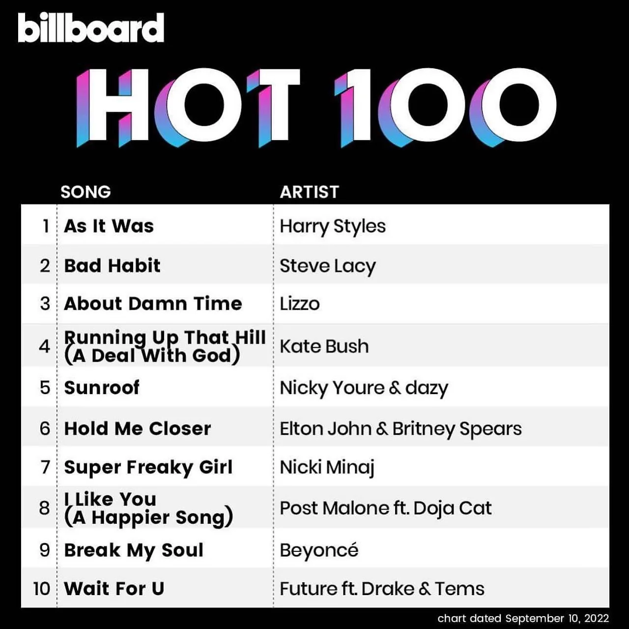 탑 텐 안에서 유의미한 부분을 보자면 아무래도 Bad Habit이 한 단계 올랐다는 것, 그리고 Hold Me Closer가 데뷔했다는 것 정도가 있겠다.