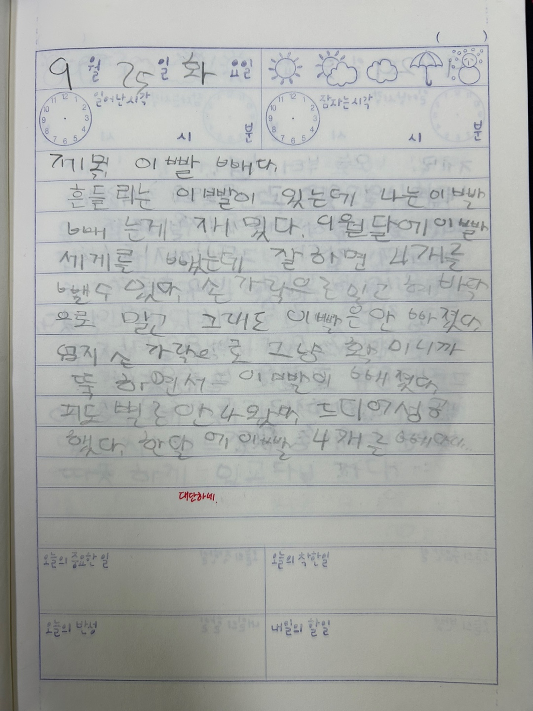 흔들리는 이빨이 있는데, 나는 이빨 빼는 게 재밌다.