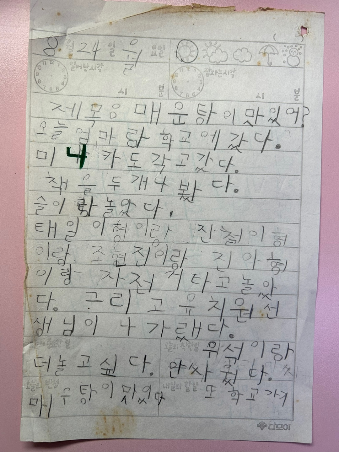 그리고 유치원 선생님이 나가랬다.